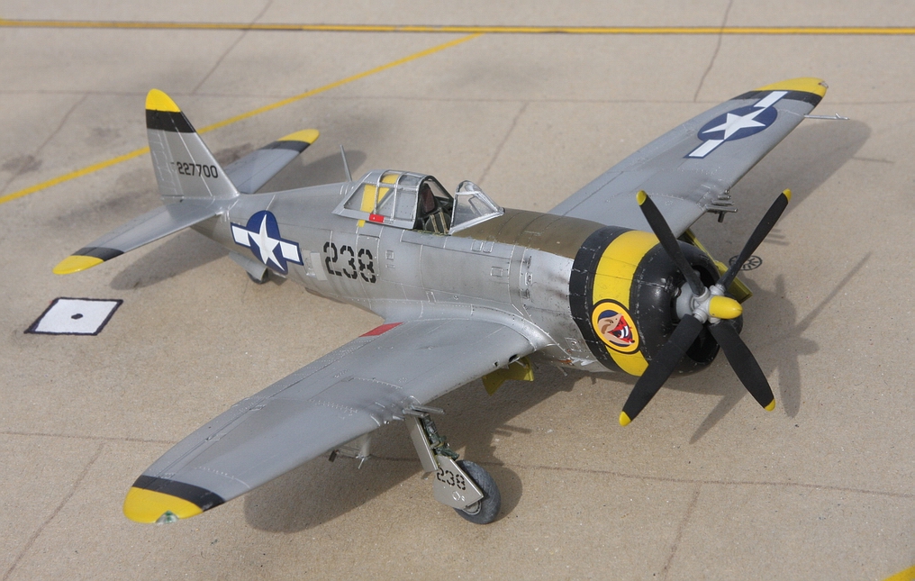 Academy a probablement utilisé la "vieille" maquette Hasegawa comme base pour le développement de ses P-47 en améliorant les détails et le traitement des surfaces. Tamiya de son coté a fait avec cet avion une de ses (trop) rares incursions au 1/72e en réduisant sa déjà très bonne maquette de l'avion au 1/48e. IL en résulte une excellente maquette, très joliment traitée, d'une facilité déconcertante à monter et ne nécessitant l'ajout de quasiment aucun détail ou accessoire.