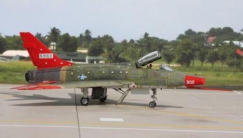 Vers la fin de leur carrières, certain F-100D ont été ré-équipés de tuyères de F-102, caractérisées par des pétales de réacteurs totalement différents. Mon QF-100D en était équipé.