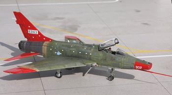 La base est la maquette Esci, connue. La maquette commence à dater mais reste saine, facile à monter et juste. Les quelques défauts connus concernent principalement le fait que les volets de bord d’attaque des ailes sont moulés fermés alors qu’ils sont normalement en position basse sur les F-100 au sol, la profondeur réduite de la tuyère et de l’entrée d’air et le besoin de détails sur certaines partie de la maquette à commencer par le cockpit.