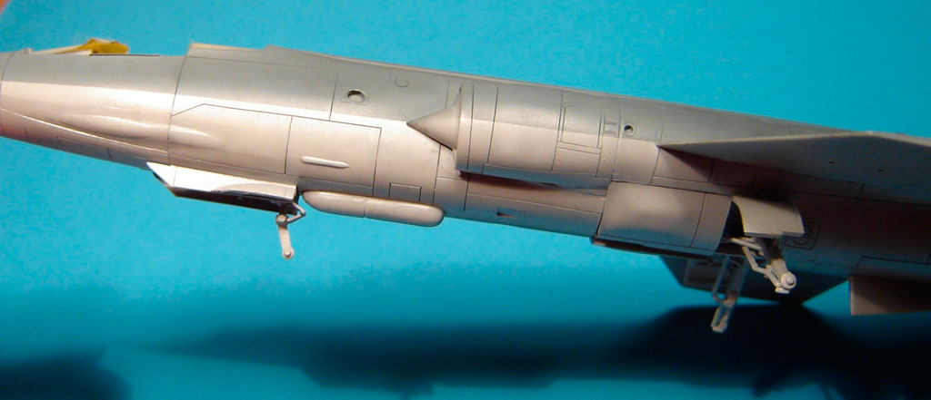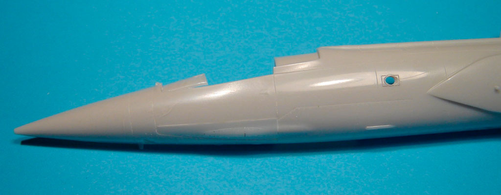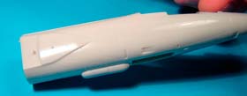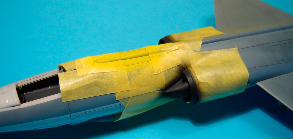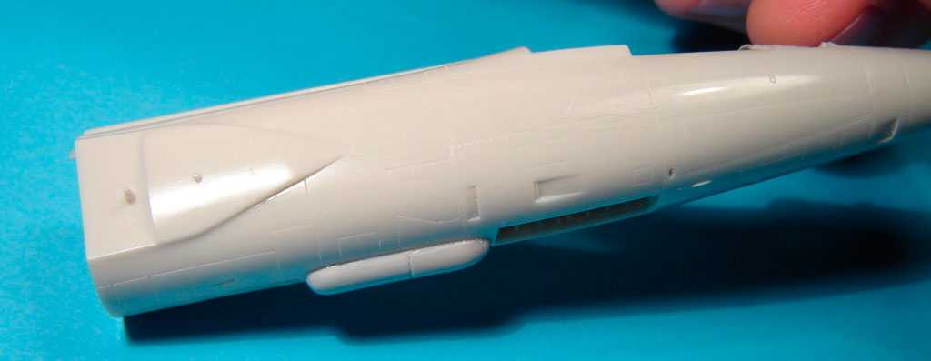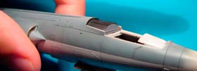 L’assemblage de l’ensemble /fuselage avant, fuselage arrière, entrées d’air/ est assez délicat sur ce kit. Il convient de procéder à des essais à blanc pour éviter une séance dispensable d’application de mastic.