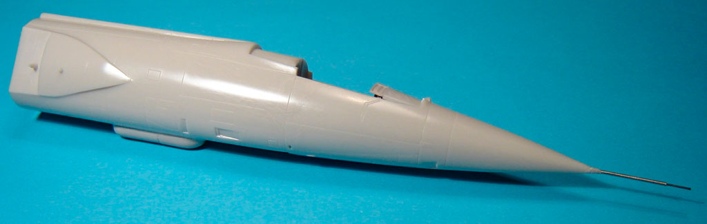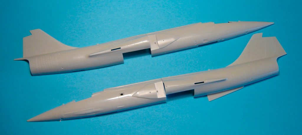 Le plastique est assez fin à l’arrière du fuselage, l’assemblage est un peu délicat pour préserver la gravure. Le moule du Starfighter Hasegawa commence à accuser son âge et cela commence à se ressentir sur la propreté des grappes des rééditions relativement récentes de cette maquette.
