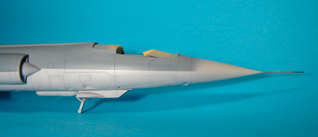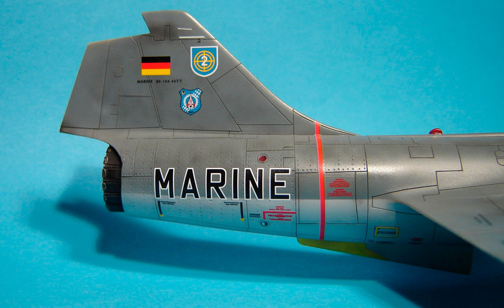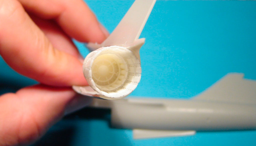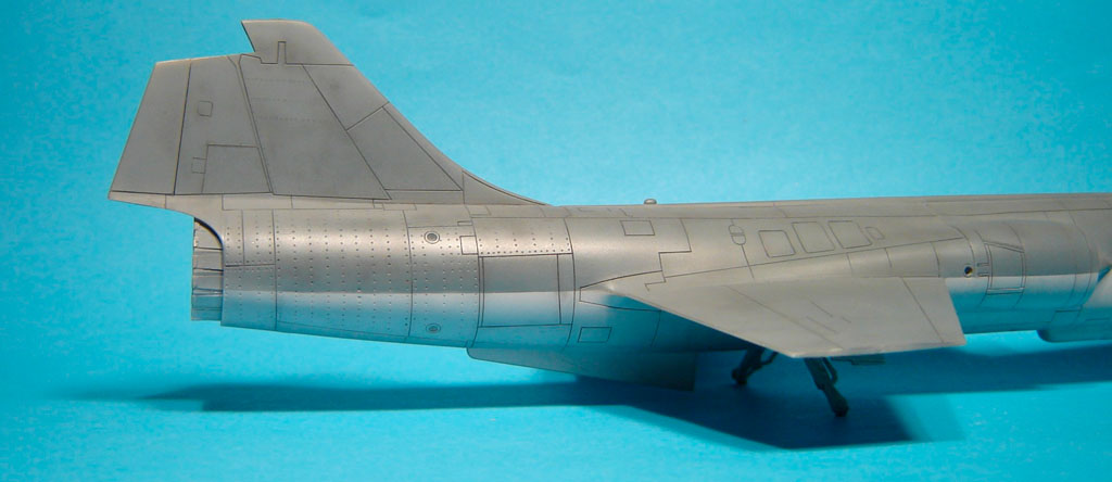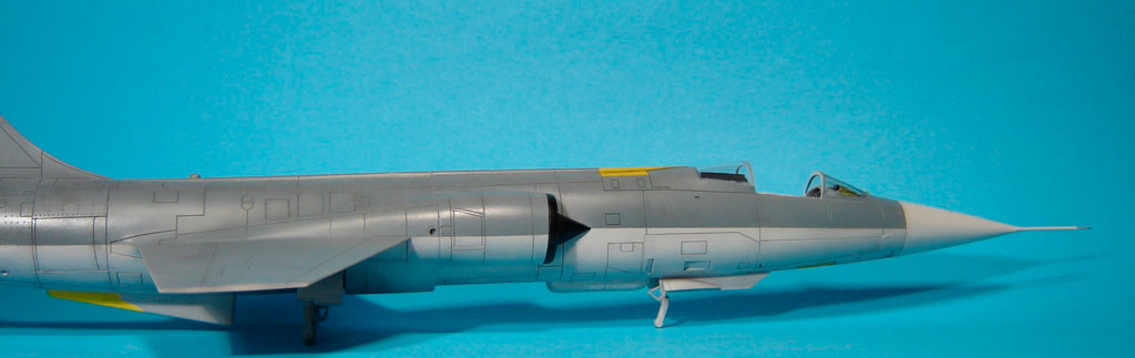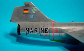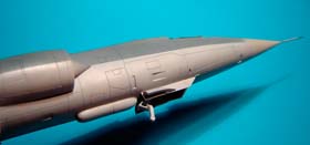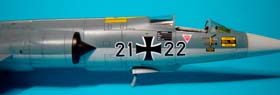 Les versions plus tardives des F-104G Allemands sont équipées d'un nouveau type de tuyère. On les reconnait à leurs pétales plus larges. J'ai utilisé la tuyère en résine de Aires destinée au F-4 PhantomII.