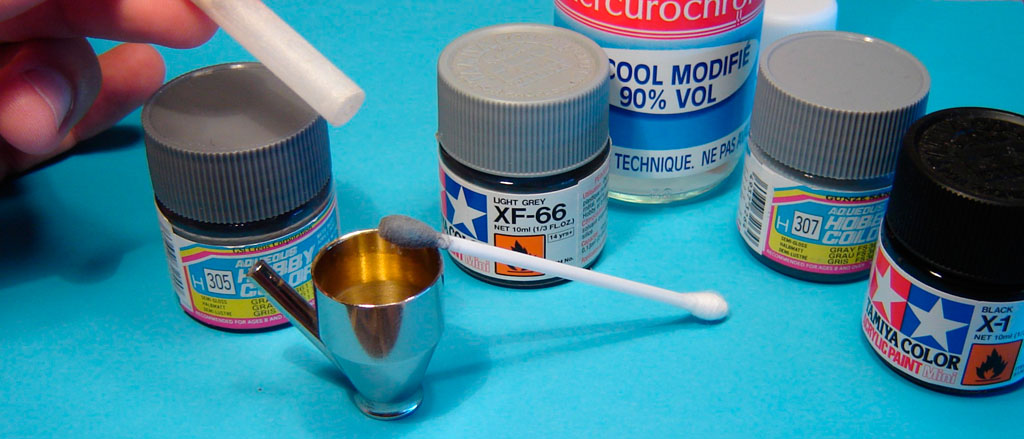 Noir XF-1 Tamiya, gris XF-19, vert olive Humbrol.