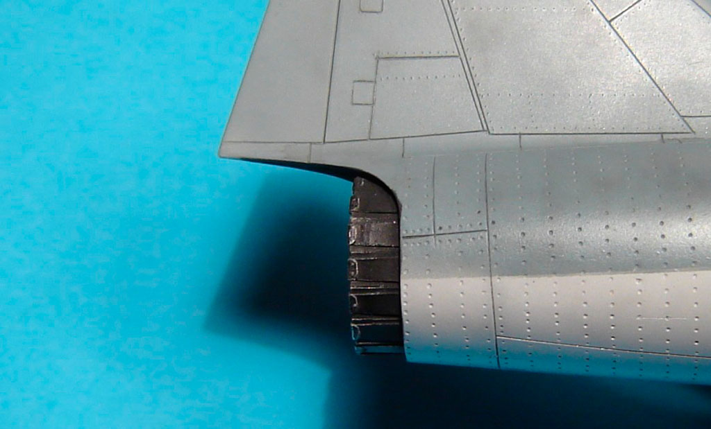A l'aide d'une aiguille glissée dans un critérium, et d'un set pour regraver d’Hasegawa, le modèle déjà en creux est complété par quelques rivets et lignes de structure.