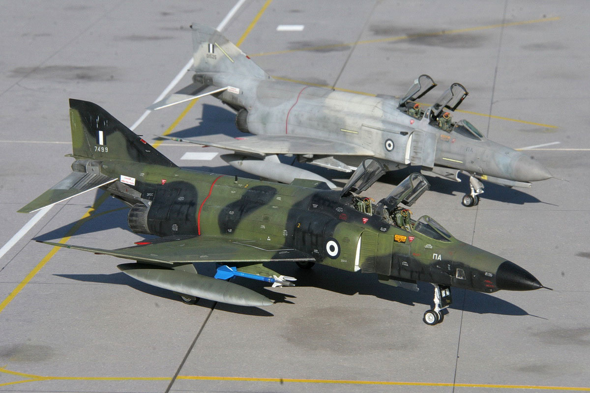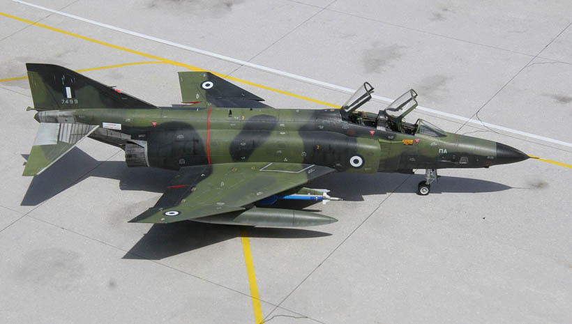 Les Grecs utilisent une flotte de reconnaissance composite, équipée de plusieurs versions de RF-4 : des RF-4C, des RF-4E d’origine allemande facilement reconnaissables par leur camouflage vert/vert foncé/noir, et quelques RF-4E tardifs très spécifiques : ce sont les seuls, avec quelques avions opérés par la Turquie équipées d’ailes munies de becs de bord d’attaque (slats) comme les F-4E , F-4F et F-4G. La raison est que la commande étant tardive la ligne de production n’était plus capable de fournir que des avions munis de slats. Ce sont donc les derniers RF-4 construits.