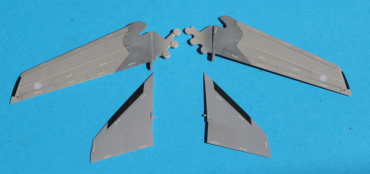 Chacune des ailes se monte simplement avec une pièce principale reprenant l’extrados, les surfaces mobiles et le pivot d’aile, tandis qu’une plus petite pièce constitue le caisson central d’intrados.