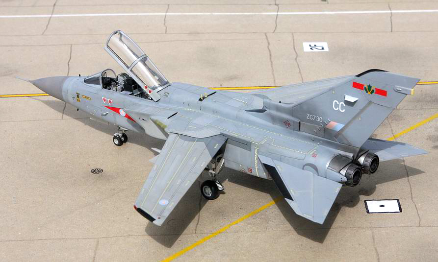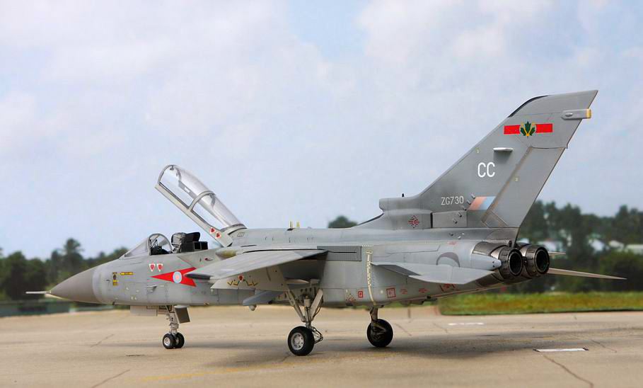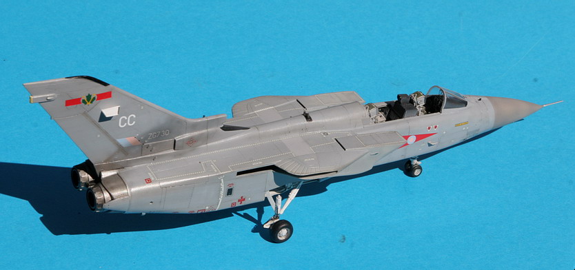 Les Tornado F3 reçoivent un camouflage Barley Grey dessus, Light Aircraft Grey dessous, deux couleurs assez courantes dans les gammes de peintures. La séparation des couleurs est nette et suit un schéma compliqué sous le fuselage qui impose de procéder par masquage à la bande cache. Il s’agit en premier lieu de bien repérer le schéma de séparation des teintes.