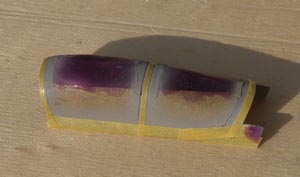 Toutefois il apparaît que la gravure des volets est trop large, les surfaces mobiles ayant une corde trop importante, tandis que les spoilers manquent, eux, de surface. J’ai donc bouché et poncé les gravures d‘origine avant de redonnant aux surfaces de contrôle de la voilure une taille plus conforme en les regravant.