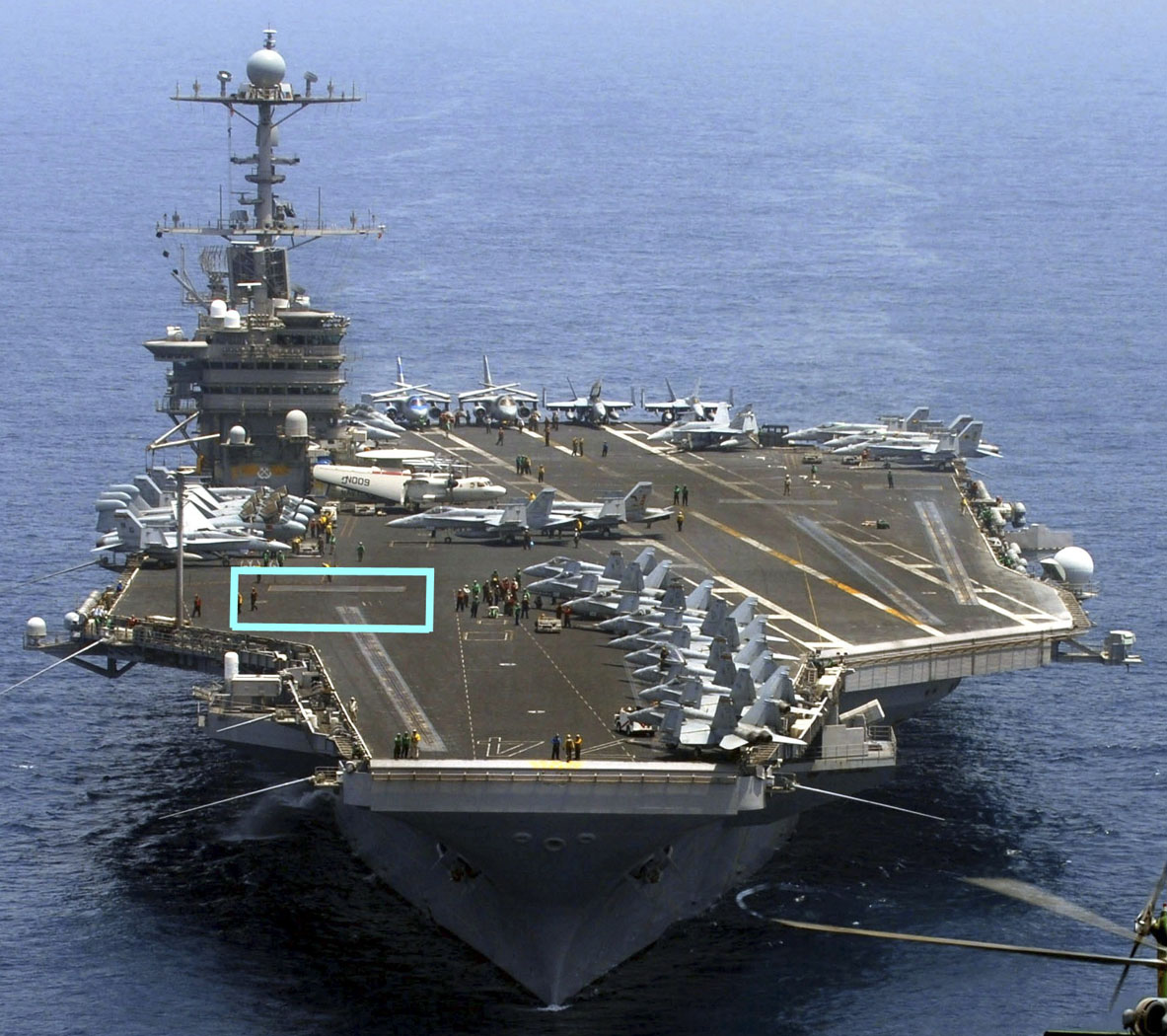 Sur ce type de porte-avion (Nimitz, Ike, Carl Vinson, Lincoln, Washington, Stennis, Truman, Reagan, Bush) vous pouvez voir sur la photo précédente que :