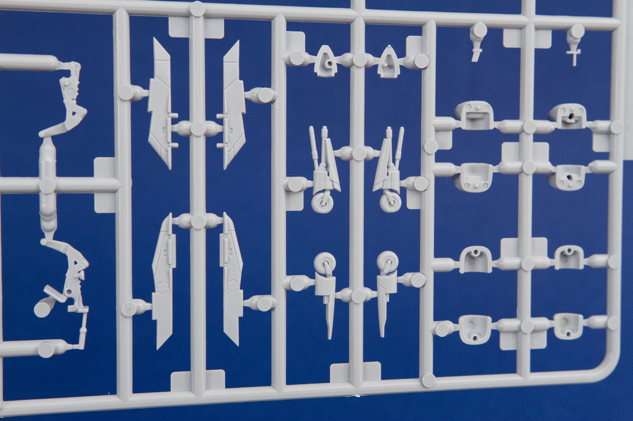 Par comparaison avec les modèles Hasegawa, la gravure est plus appuyée, moins fine, mais un léger ponçage au papier 400 à l'eau remédie sans problème, le plastique étant ni trop dur ni trop mou il est très agréable à travailler. La représentation des volets additionnels sur les entrées d'air n'est pas assez carrée à mon goût. Les tuyères ne sont pas évidées entre les cloisonnements. Je cite ces points en étant exigeant sur l'analyse mais honnêtement le kit dans sa globalité est vraiment très bon. La comparaison du kit avec différents plans n'a montré aucun défaut de formes ou de dimensions. Au moment où j'écris ces lignes le montage de la maquette est bien avancée et les assemblages n'ont posé aucun problème, pas de défaut d'alignement ni de zone à mastiquer en quantité.