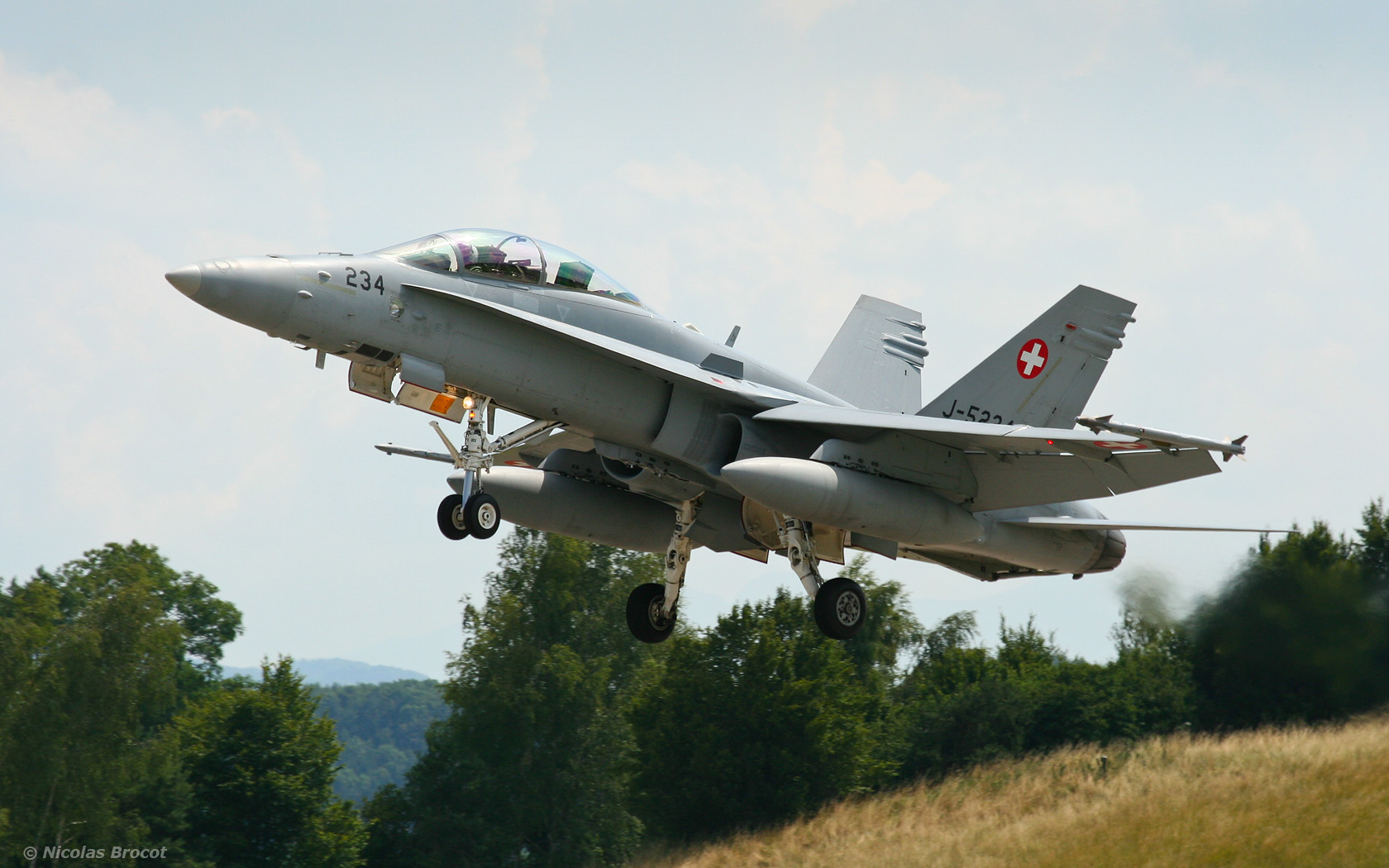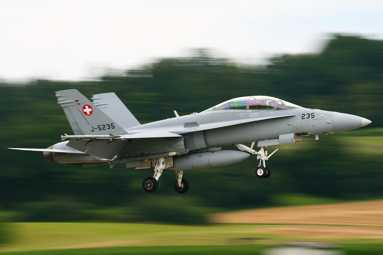 F/A-18D de la Force Aérienne Suisse au décollage sur la base de Payerne |