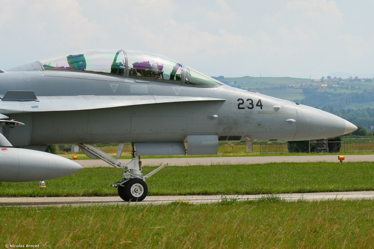 F/A-18D de la Force Aérienne Suisse au roulage sur la base de Payerne |