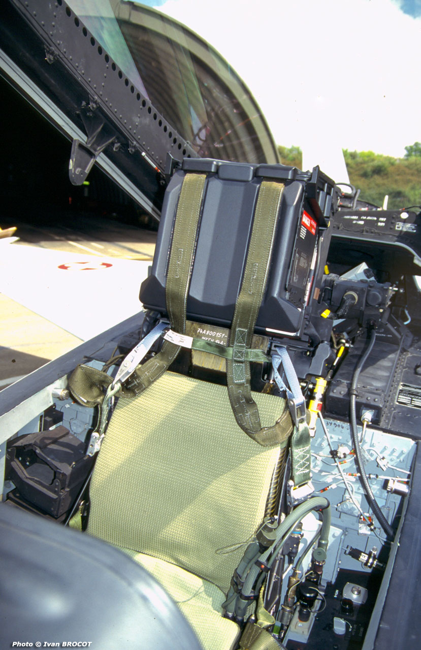 Planche de bord du poste avant et siège ejectable d'un F/A-18D |