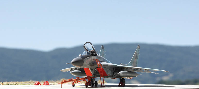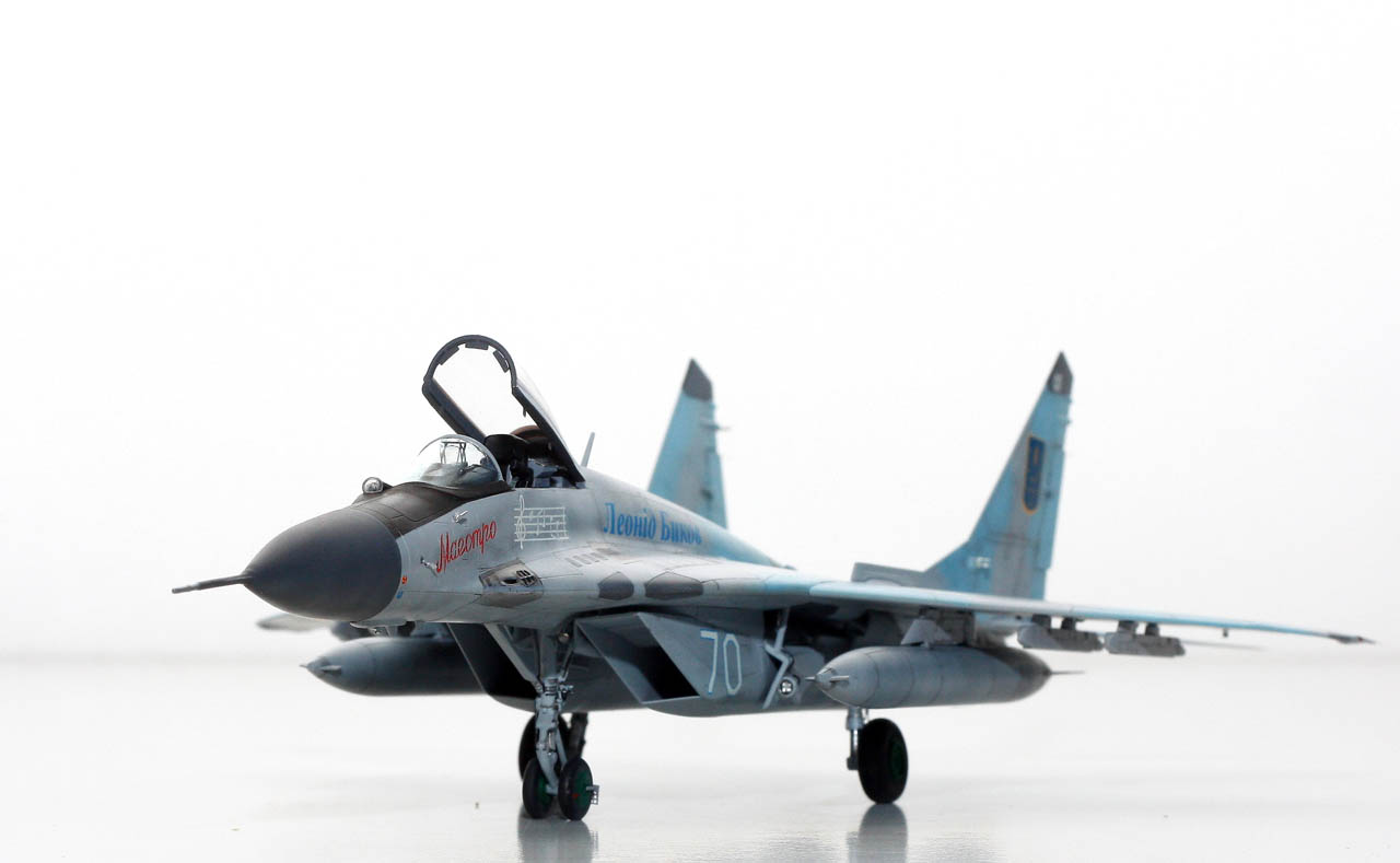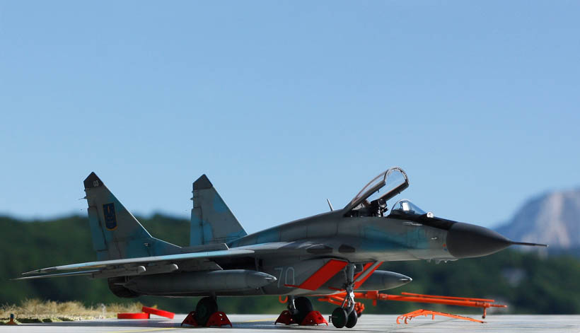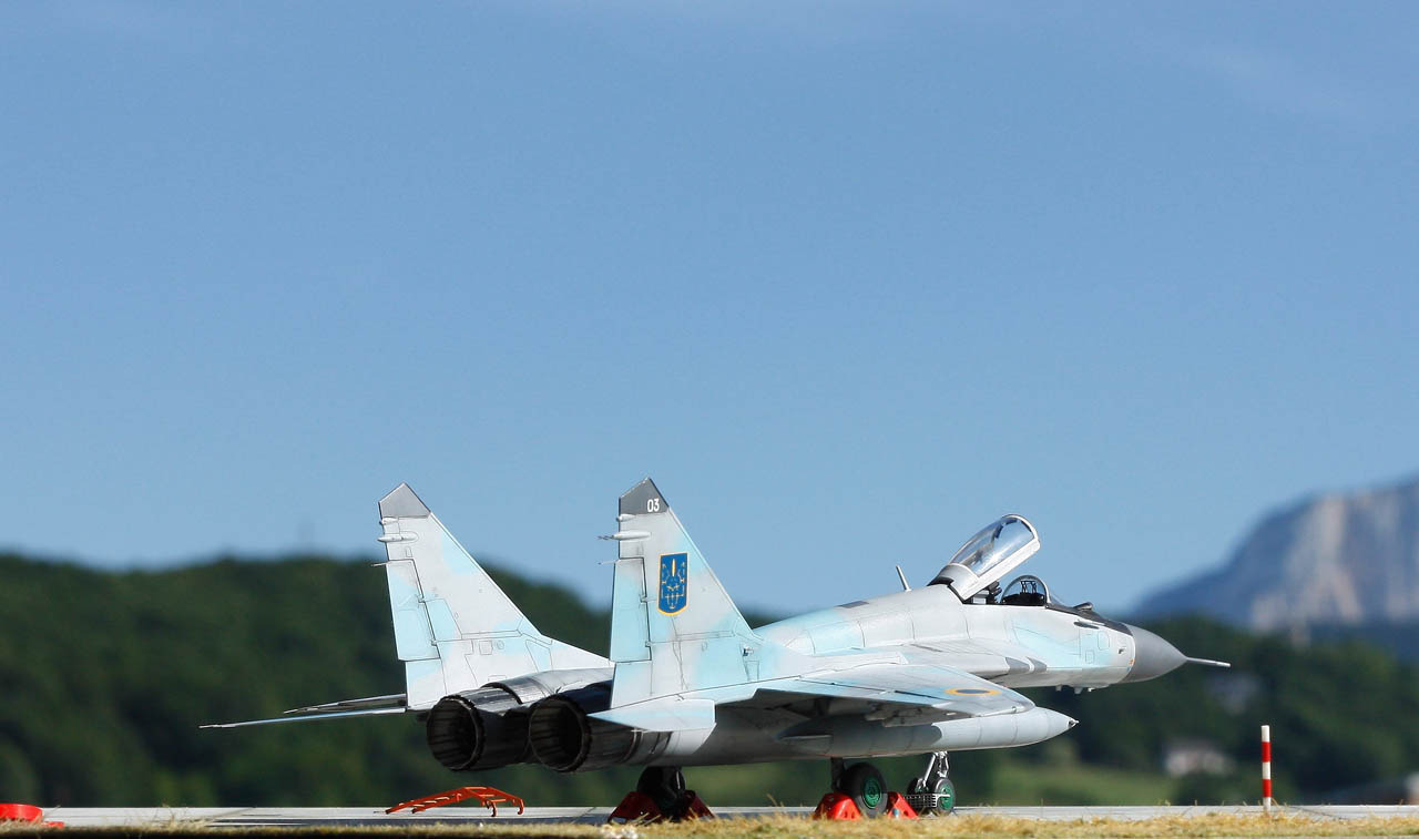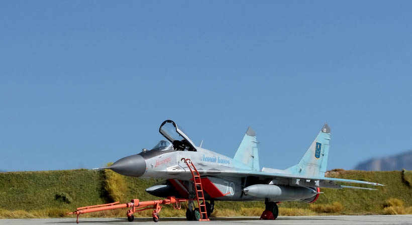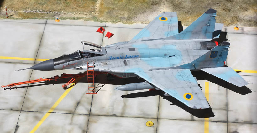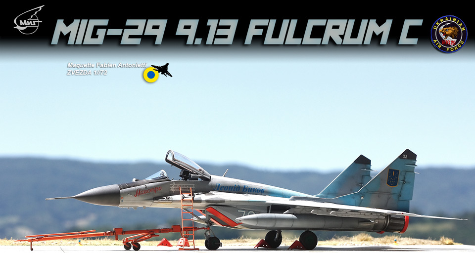 MIG-29 (Izdeliye 9.13) - 2nd AS of 40th Fighter Aviabase of Ukranian Air Defense Forces Vasilkov Airbase, 2007. Maquette Zvezda n°7278 Décalcs Begemot 72-032 Roues Brassin 672090 Set Eduard 73555 Tuyères Amigo Models AMG 72011