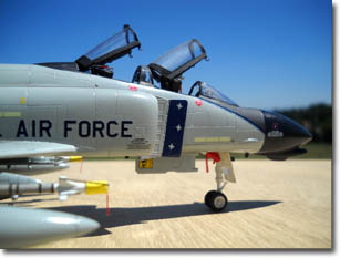 Pas de difficultés particulières donc, si ce n'est l'éternelle et fastidieuse séance de ponçage des entrées d'air, mais c'est le lot de toutes les maquettes de Phantom. Depuis, sur les kits Hasegawa, j'utilise systématiquement des pièces en résine KMC représentant les veines d'entrées d'air ainsi que les aubes des réacteurs. Cela facilite grandement le travail.