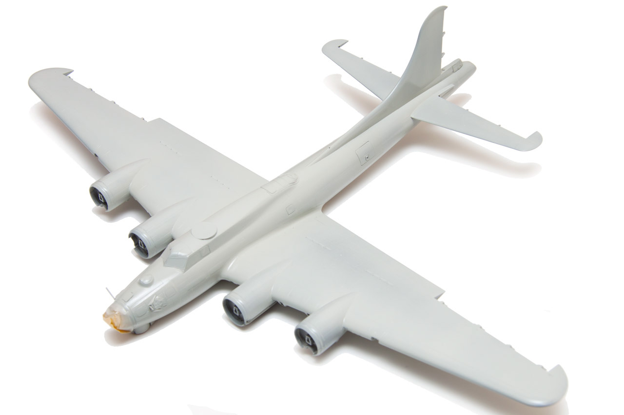 Cela faisait très longtemps que je voulais ajouter la Forteresse volante à ma collection. C'est donc avec une certaine impatience que j'attendais la sortie du kit annoncé par Revell. Fin novembre 2010 la maquette était enfin disponible. A l'ouverture du kit, les grappes m'ont quelque peu déçu. La gravure étant vraiment trop appuyée à mon goût. La dureté du plastique beaucoup trop tendre me donna une mauvaise impression. Par contre, la qualité générale des assemblages et les nombreux détails compensent largement les désagréments.