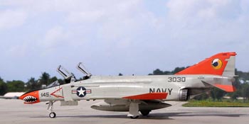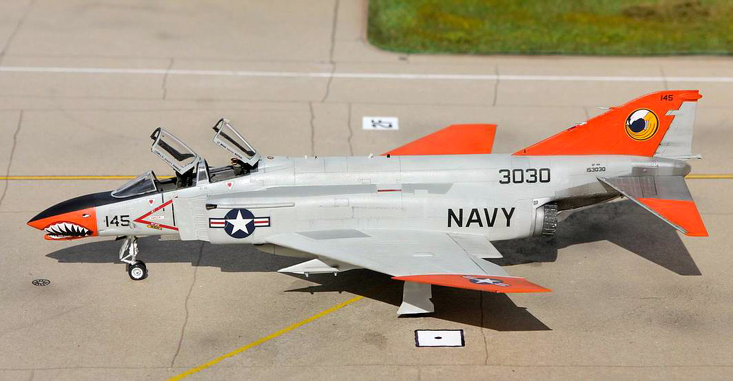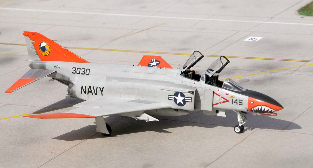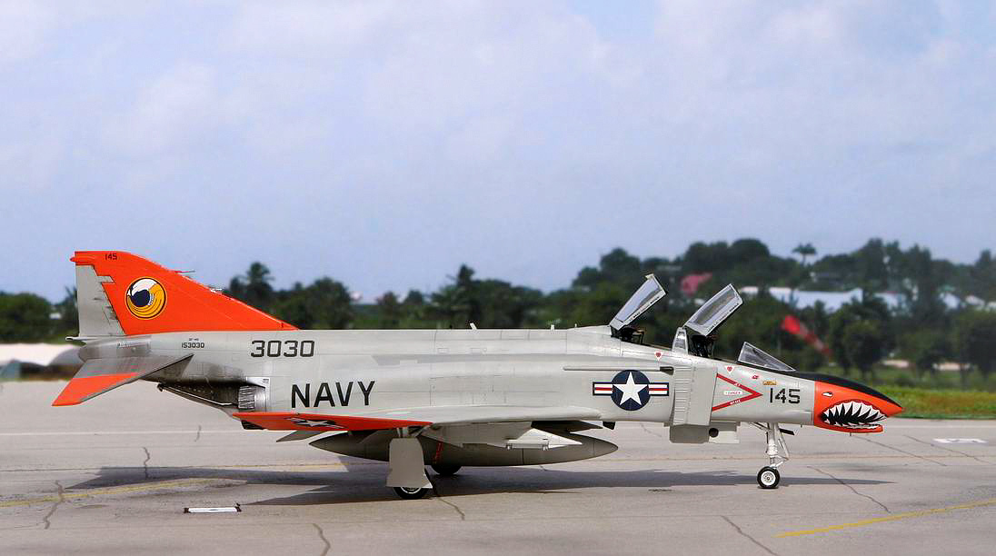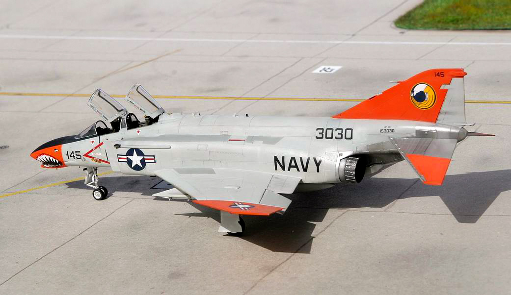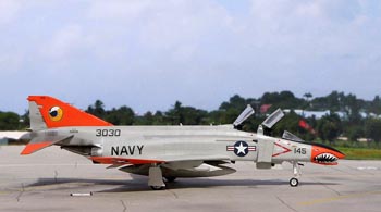 Par ailleurs, en effectuant mes recherches, je me suis rendu compte qu’un des avions de la planche avait une histoire extrêmement riche. Il s’agit d’un QF-4N qui avait volé très tardivement sous les couleurs de l'US NAVY. Ce Phantom, BuAer 153030 est le dernier Phantom II à avoir volé sous les couleurs de l'US NAVY en août 2004. Il est maintenant exposé au musée basé sur le USS Midway à San Diego et porte les couleurs de deux Phantom basés sur ce même porte-avions pendant la guerre du Vietnam auteurs de la première victoire aérienne au Vietnam (moitié bâbord - F-4B NE/101 de la VF-21, victoire du 17 juin 1965) et de la dernière victoire aérienne au Vietnam (moitié tribord – F-4 NF/102 de la VF-161, victoire du 12 juillet 1973.)
