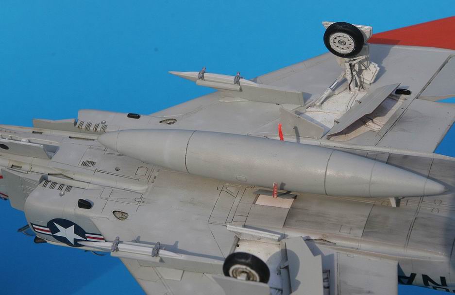 En fonction de la documentation, s'agissant d'un QF-4N, les antennes, prises de pressions sont ajoutées. Deux feux sont creusés sous les entrées d'air grâce à une mini fraise sphérique.