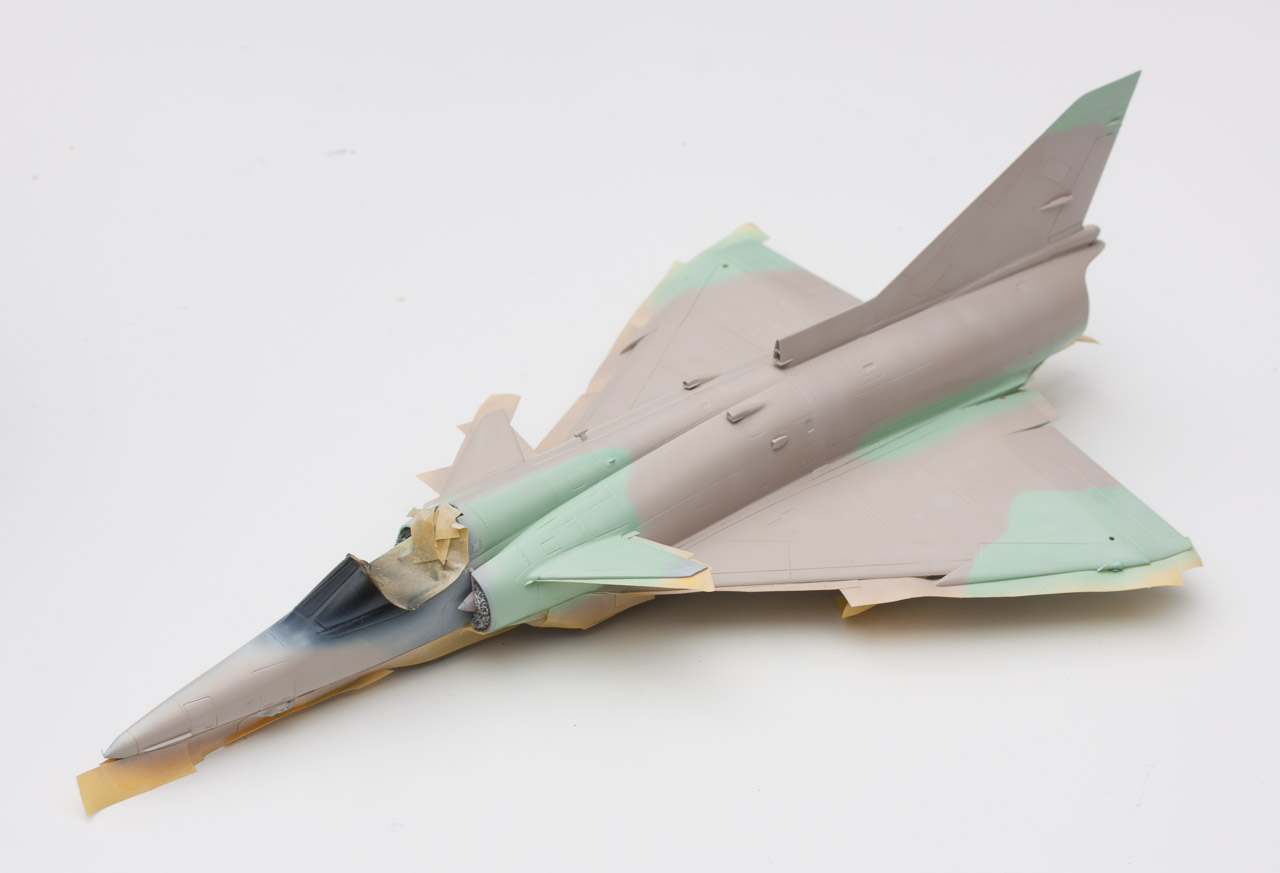 La peinture étant très fine, j'ai réalisé le camouflage à l'aérographe à main levée. Pression de pulvérisation 1bar seulement et aérographe placé très très près de la maquette.
