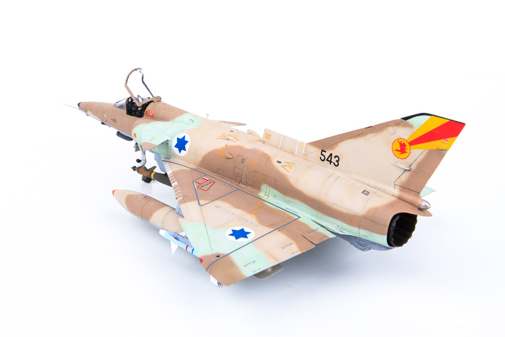 Il manquait une belle reproduction du Kfir au 1/72, les anciens kits Italeri et Hasegawa étant bien loin des standards actuels. Mais AMK nous propose désormais un kit au 1/72, gravé en creux, très détaillé, avec de nombreuses options pour l'armement et 5 décorations ! En somme, un kit de grande qualité qui vient remplacer tout ce qui existait jusqu'à maintenant.