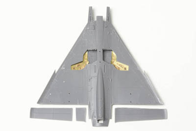 Afin que l'assemblage voilure/fuselage puis entrées d'air s'effectue correctement, il est indispensable d'agrandir l'ergot dans le fuselage (cf photo ci-dessous).