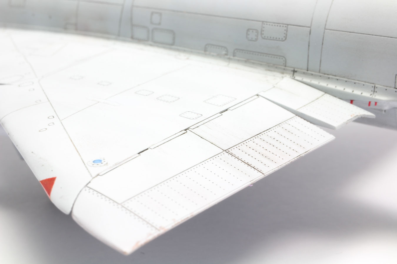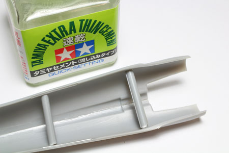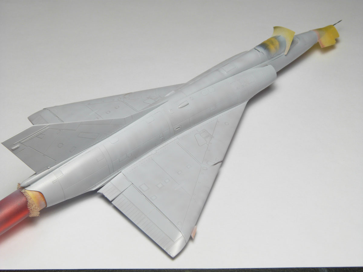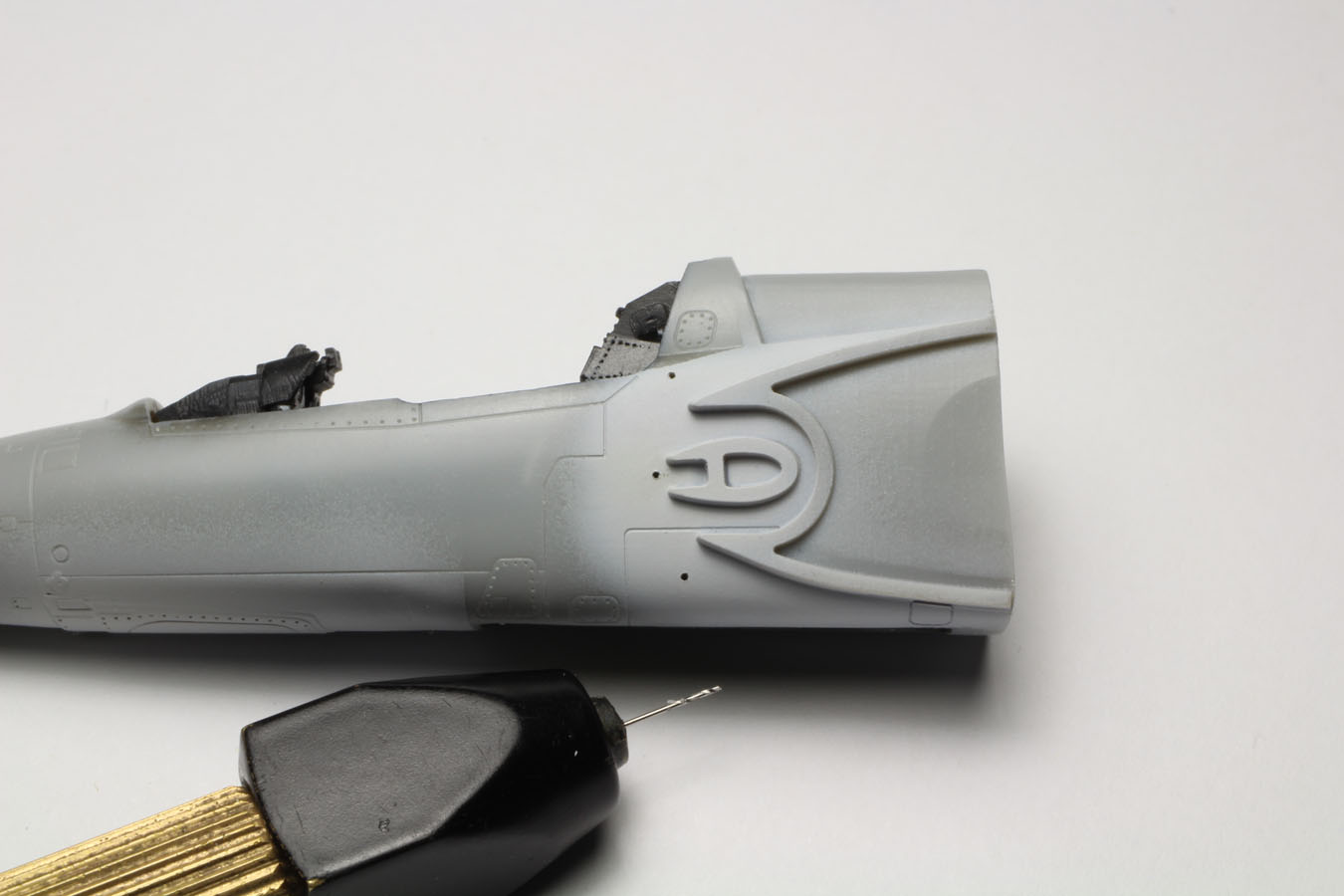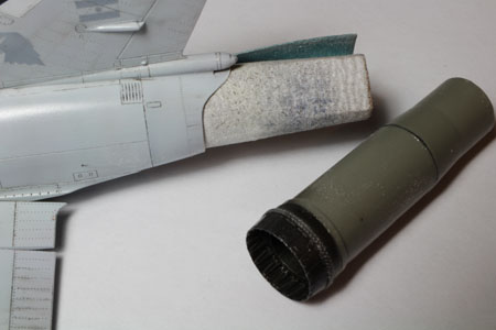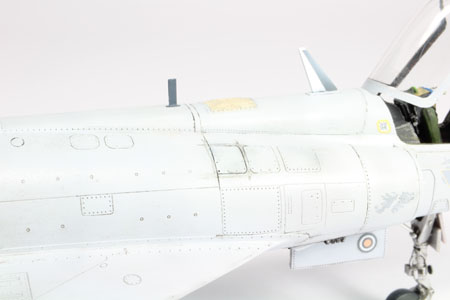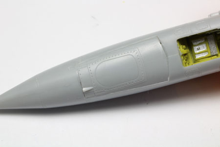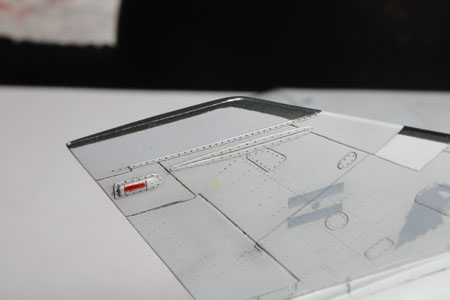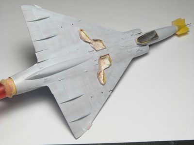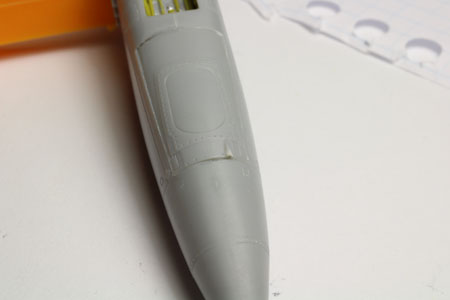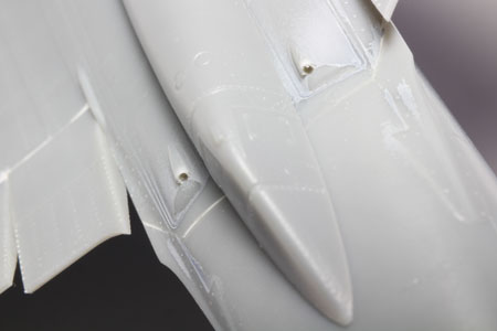 Ces pièces sont placées aprés la fermeture du fuselage. La ligne de collage est mastiquée avec du white putty.
