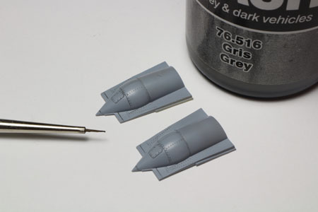 | Au pinceau même je réalise la peinture de l'intérieur en 'jet exhaust' Vallejo. |