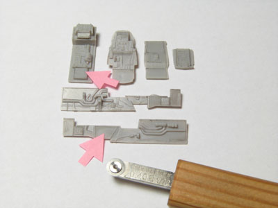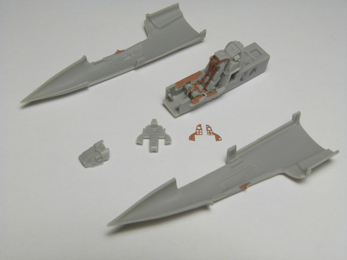 COCKPIT Le cockpit est composé de 6 pièces principales en plastique, très bien détaillées. D'autres pièces plus petites en plastique et en photo découpe sont disponibles dans la boite comme le tableau de bord, le siège, le manche à balais, et les palonniers. Pour plus de réalisme j'ai rajouté quelques lignes de rivets à des endroits particuliers là où elles sont plus visibles. |