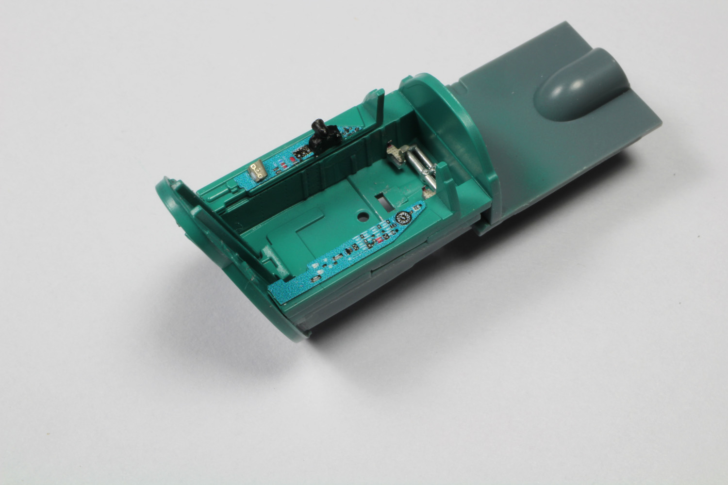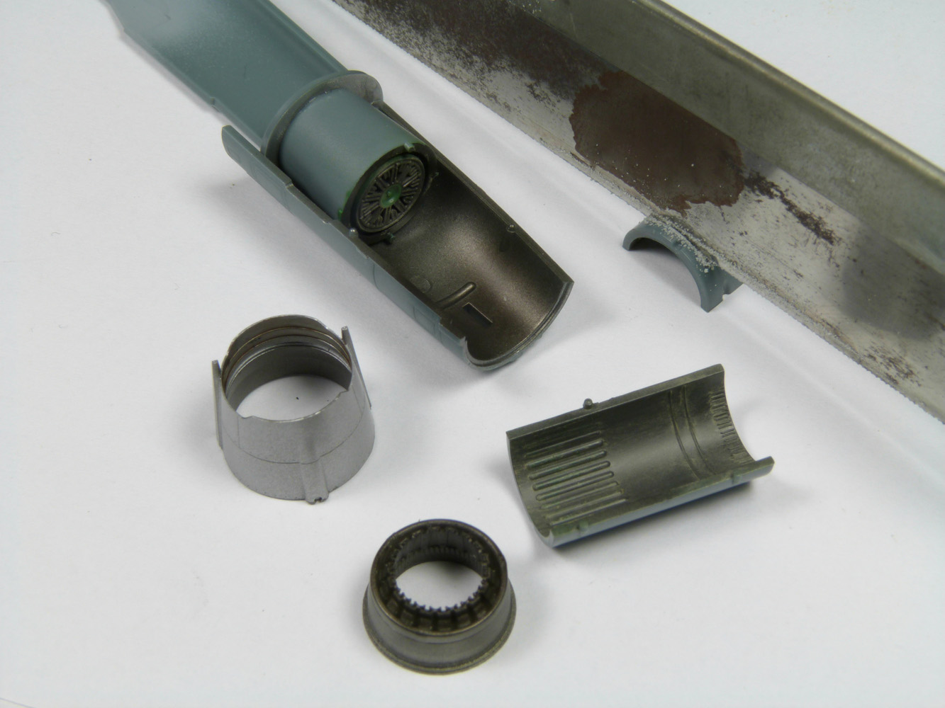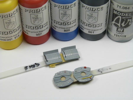 - Les trains ont reçus une couche de gris clair et ensuite les roues en résine RESKIT sont collées. Les câbles sont aussi