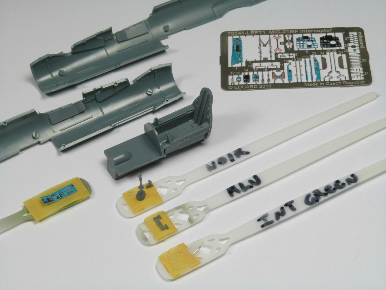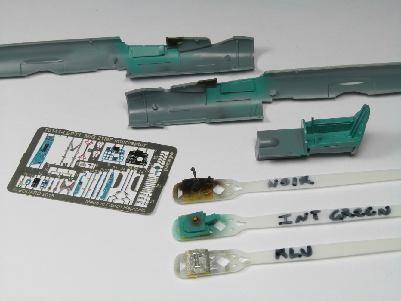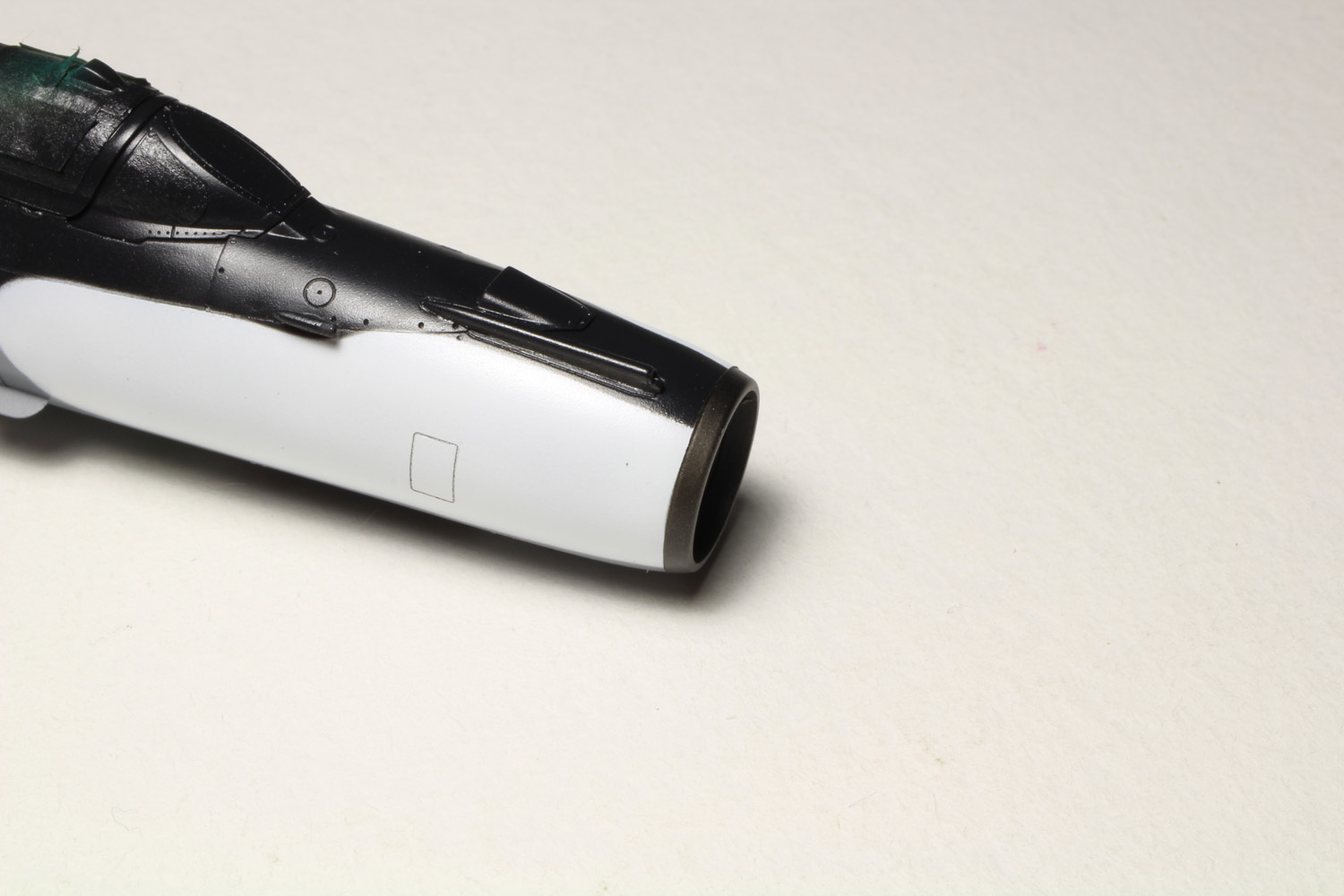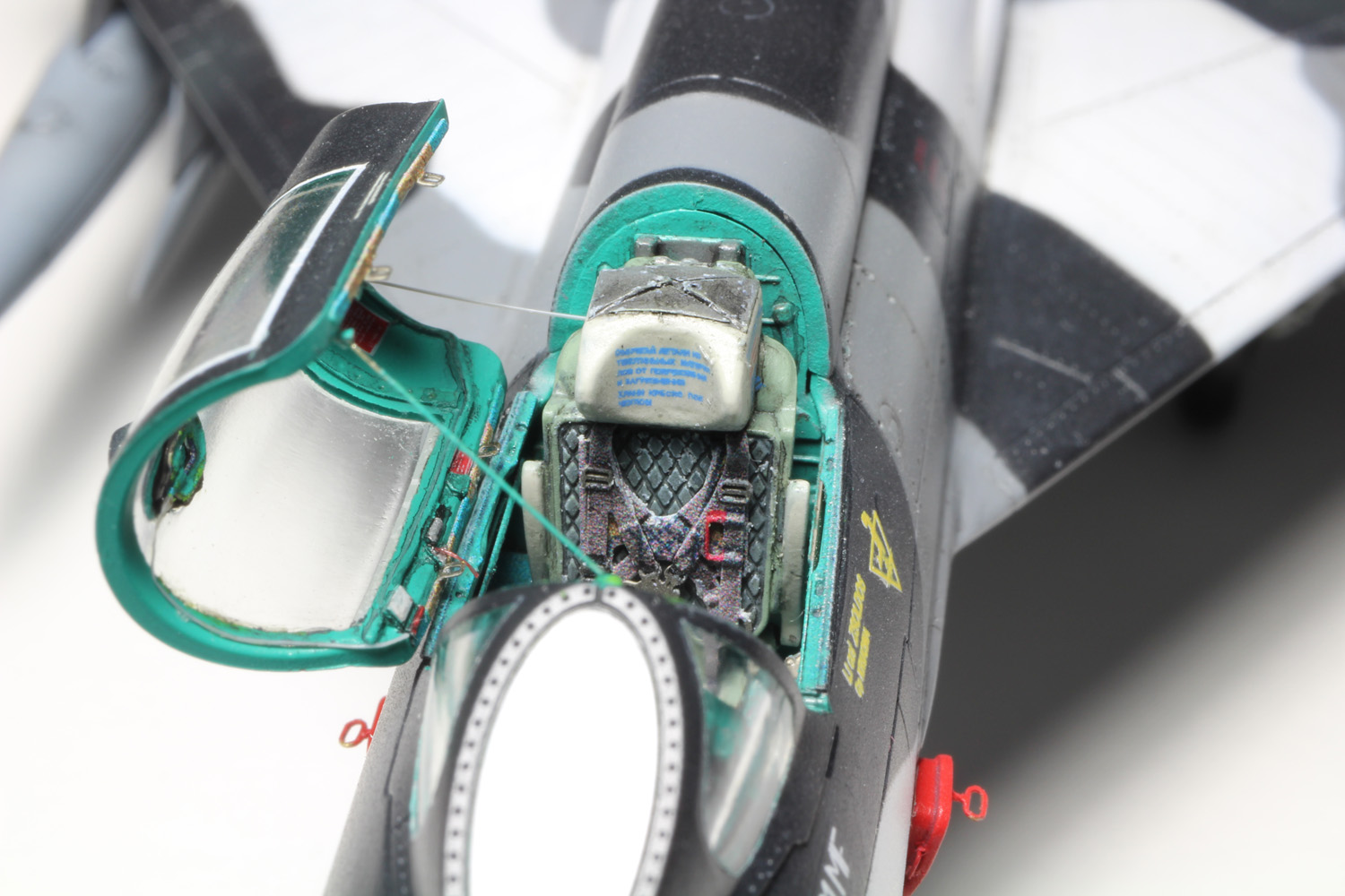 - Sans trop tarder la peinture du cockpit commence avec le vert intérieur russe (MRP-1), ensuite le noir sous la casquette