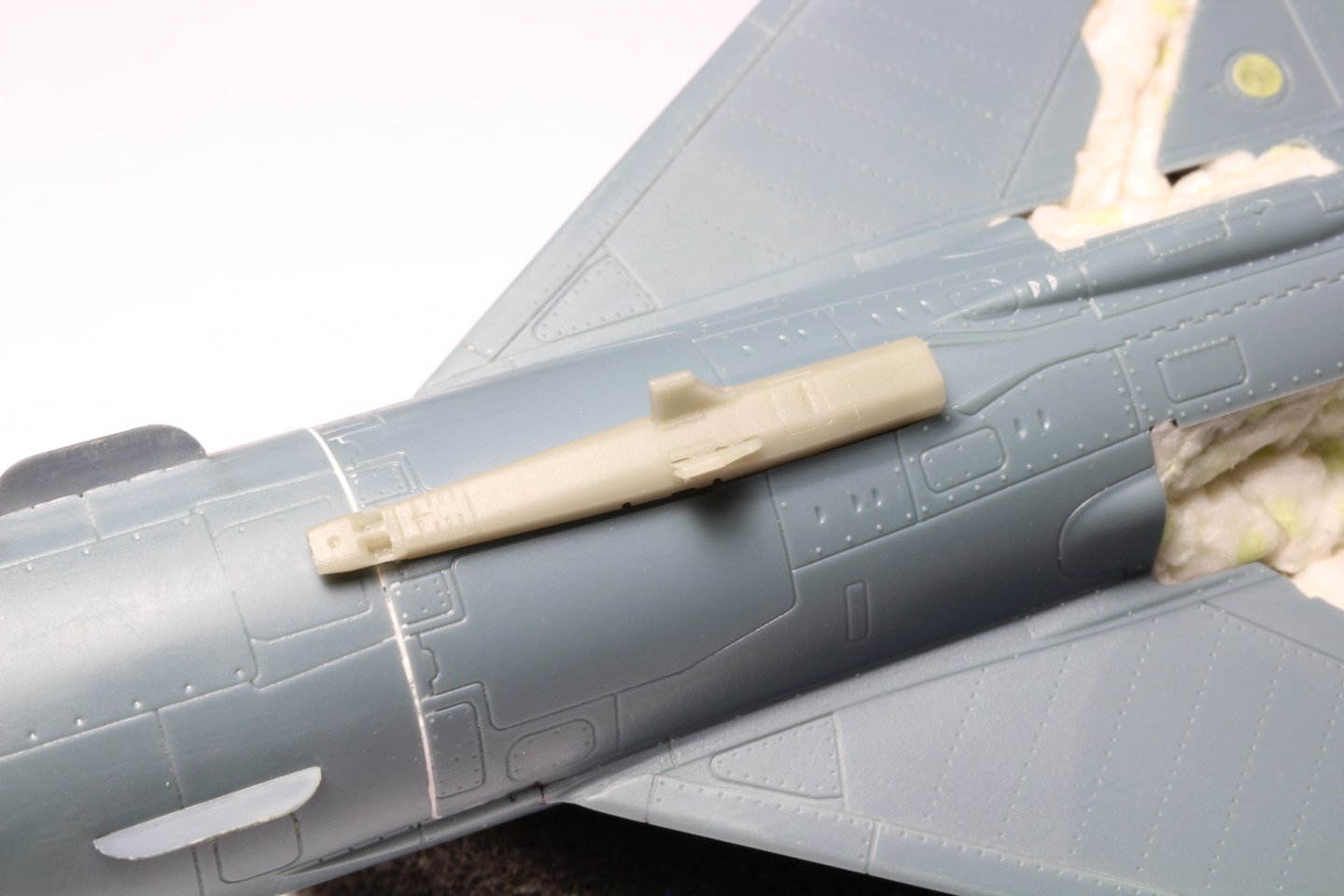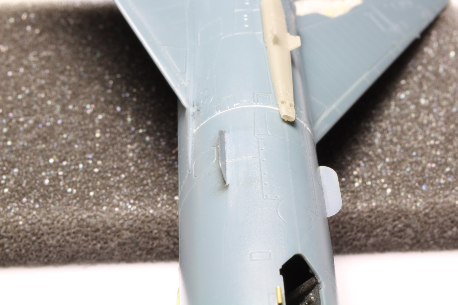 - J'ai fait en SCRATCH un petit F.O.D. pour cacher les antennes IFF du haut de la dérive, ceci apporte une touche de