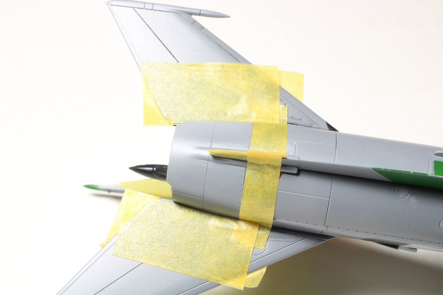 - C'est le tour des parties métalliques. On masque autour avec de la bande adhésive Tamiya.