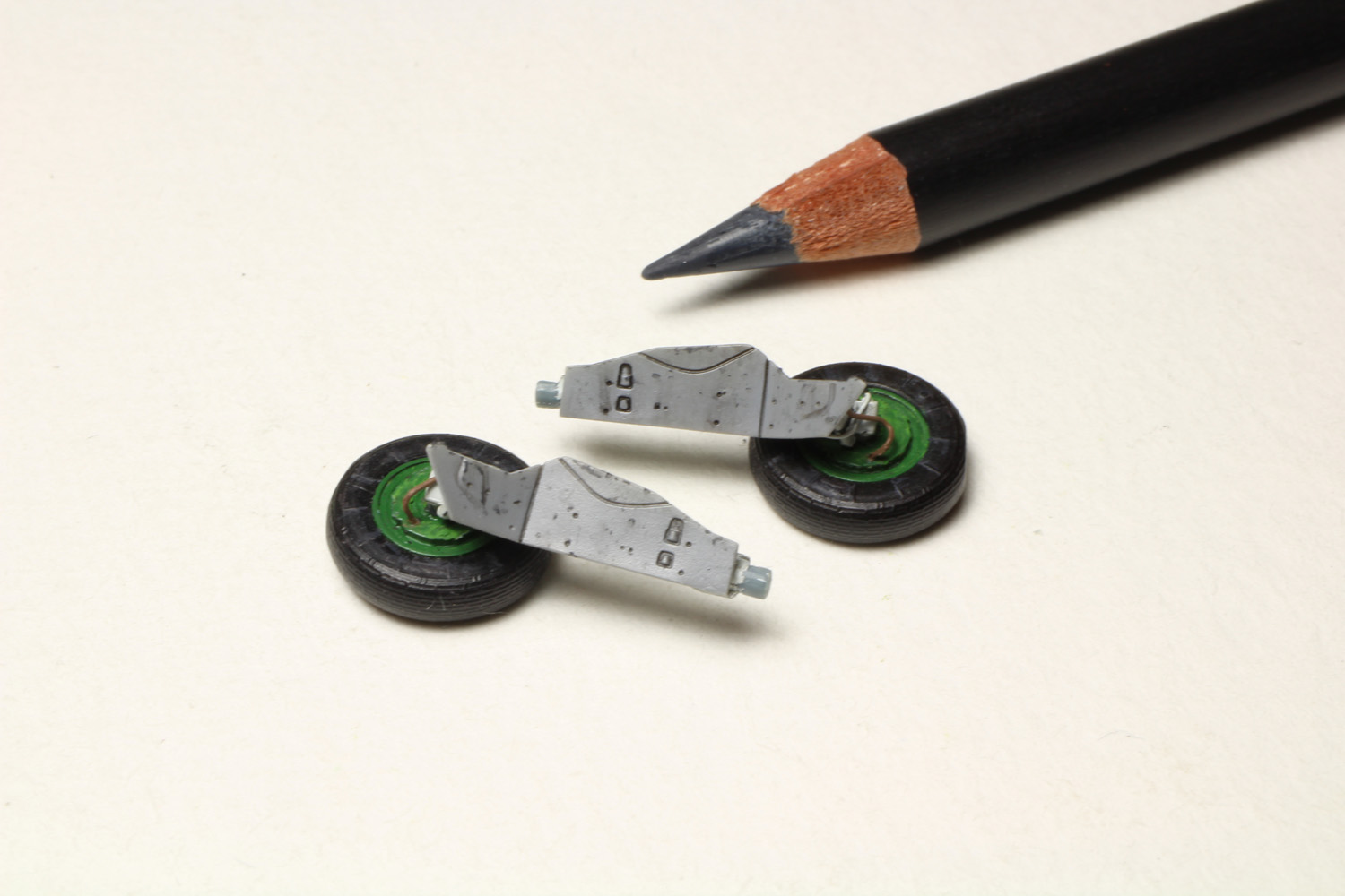 - Avec des crayons je rajoute quelques salissures sur les pneus et sur les jantes.