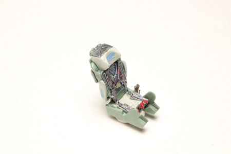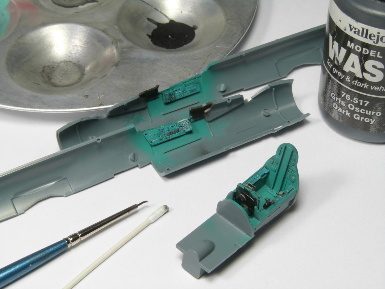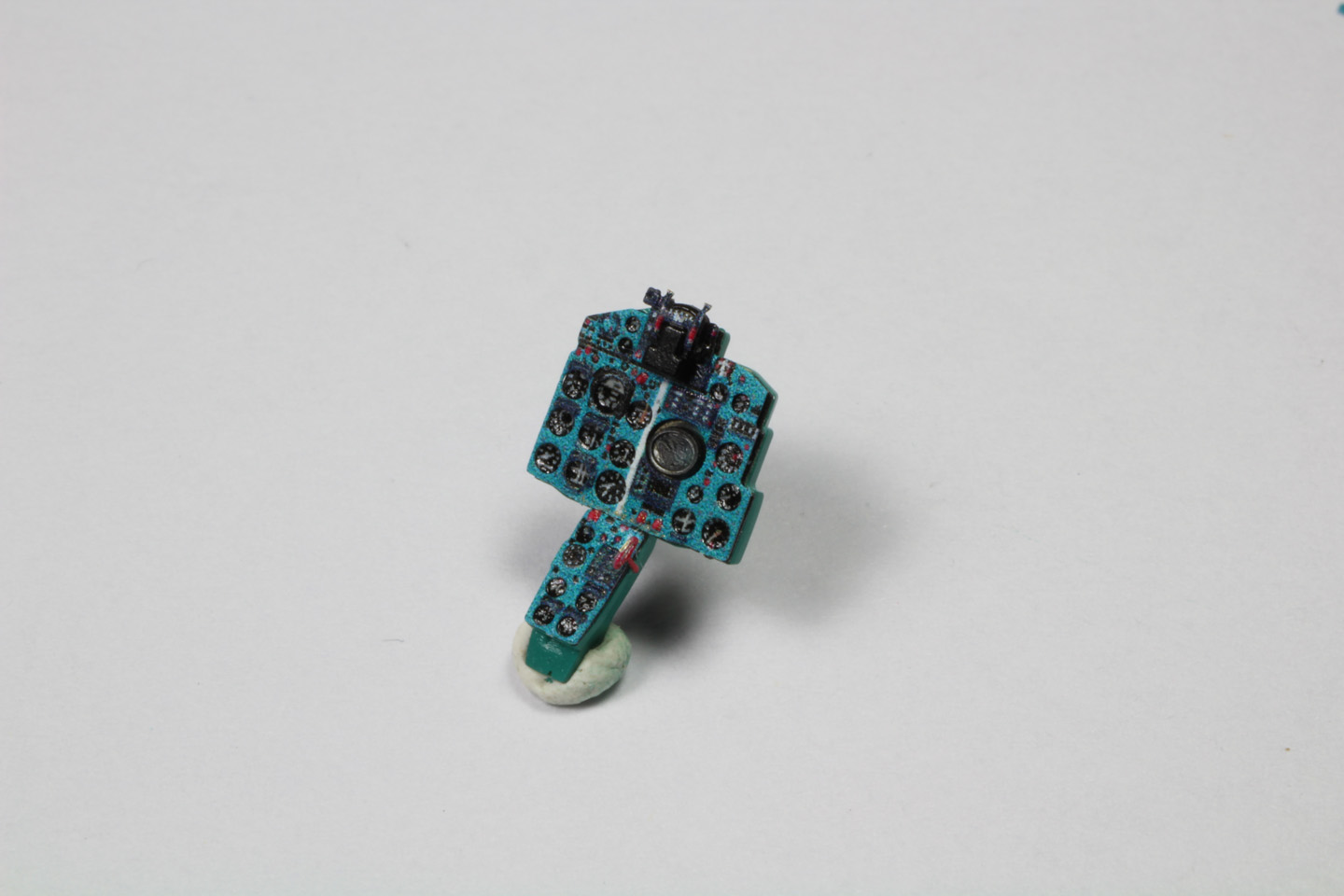 Les instruments sur les consoles et les palonniers sont collés, le cockpit commence à gagner en couleurs.