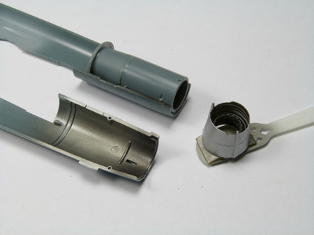 - Le collage du canon est réalisé à la CYANO, alors peu de marge à l'erreur, il faut le placer correctement du premier cout.