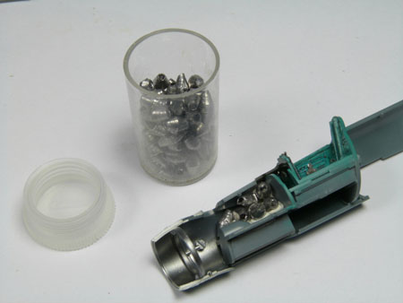 Il ne faut pas oublié de lester l'avant de la maquette avant la fermeture des demis fuselage.