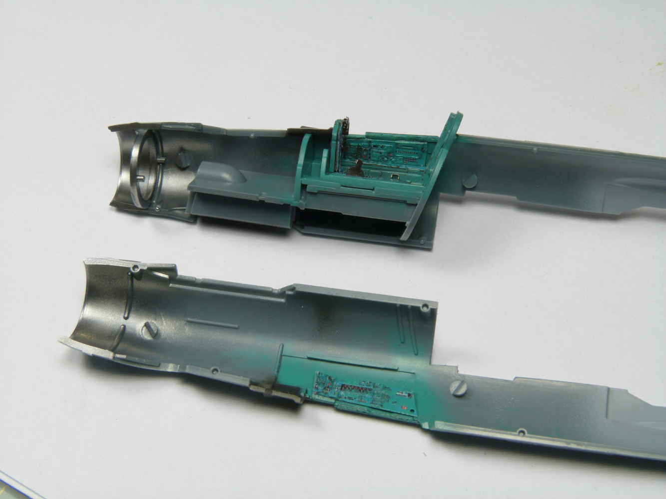 - Les demis fuselages s'assemblent très facilement. L'épine dorsale moulée avec la dérive vient juste après se poser
