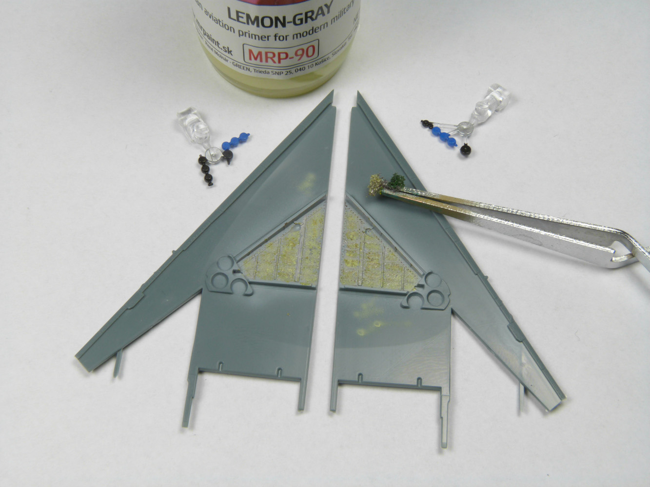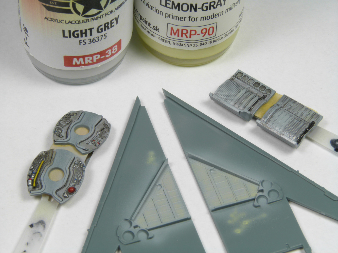 - Un léger voile de MRP-90 est appliqué pour nuancer le gris de base.