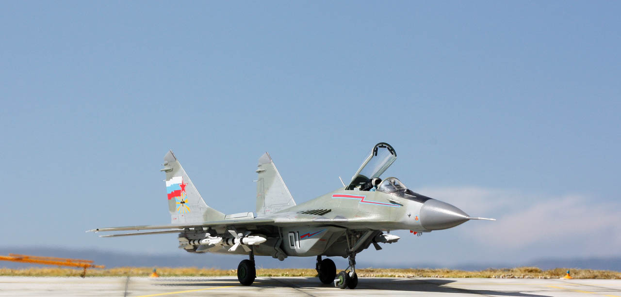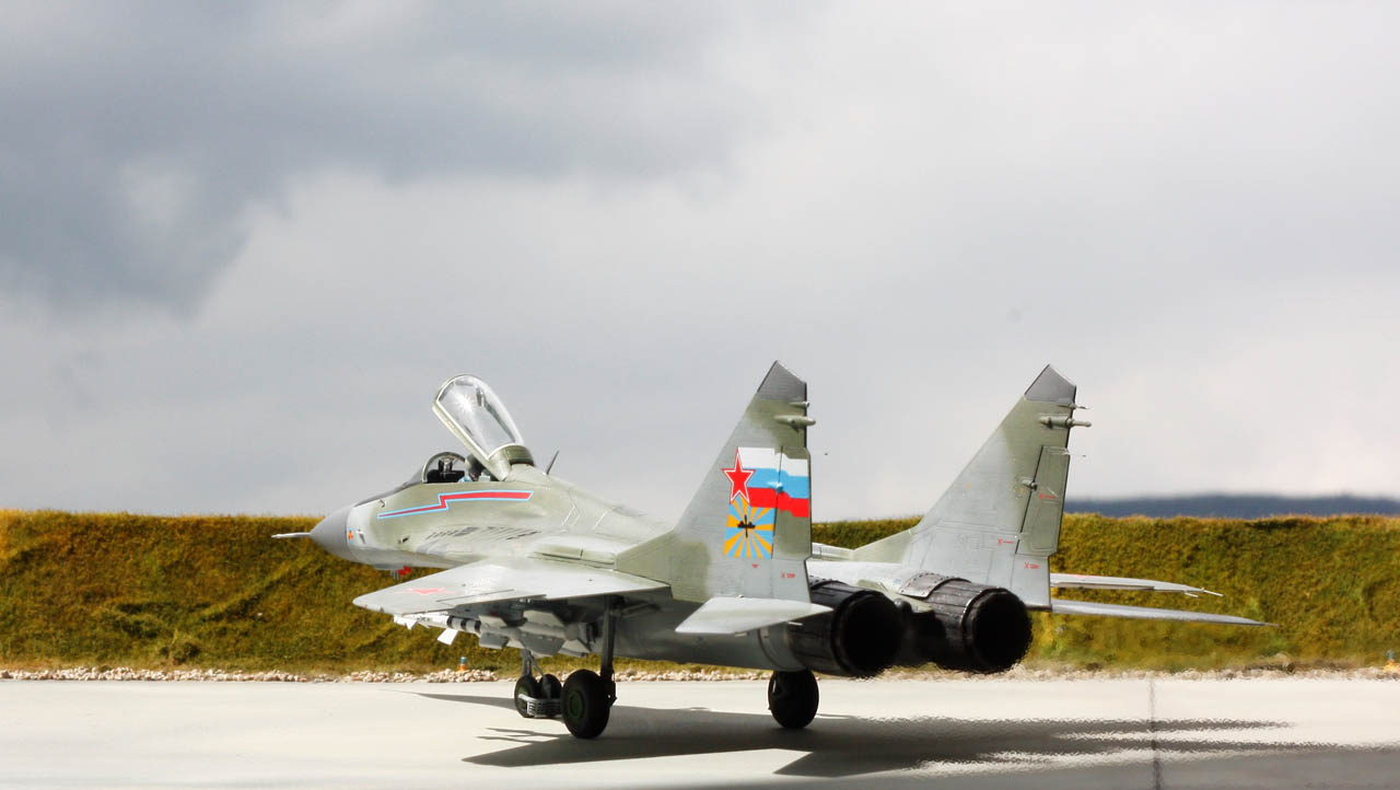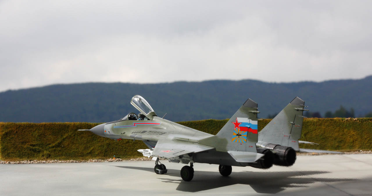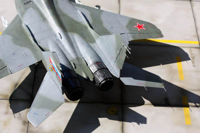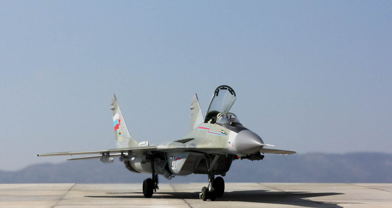 Si la sortie du MIG-29 de Trumpeter en 2015 a généré plus de prudence de la part des maquettistes que d’enthousiasme pour un nouveau moule pourtant tant attendu, j’ai été pour ma part complétement conquis par la qualité du kit. En effet les connaisseurs de l’appareil évoquent d’après plans un problème de forme concernant la largeur de la verrière et la largeur du nez. D’autres pourront être déçus par le fait que les ouïes de l'entrée d’air soient ouvertes. Pour m’éviter le scratch de leur fermeture, vous l’aurez compris, j’ai installé un pilote pour respecter la configuration d’un appareil au roulage. Néanmoins il doit être assez simple de les refermer pour assurer la cohérence de ce MIG au parking ou de créer les caches de protection spécifiques (l’option "entrées d’air principales ouvertes" est possible puisqu'on peut ouvrir ou fermer les rampes d'entrée d'air).