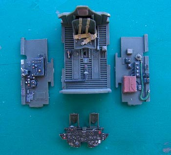 Pour la maquette Academy, il s'agit également d'un montage simple, avec comme mentionné plus haut de très grosses similitudes avec la maquette Hasegawa plus ancienne. Toutefois les détails ont été améliorés, sans toutefois atteindre le niveau d'excellence de la maquette Tamiya. Le moteur est fourni avec sa cloison et deux couronnes de cylindres. Il sera enrichi avec une peinture subtile et surtout l'ajout des "câbles d'allumage" réalisés en fil électrique. Le cockpit d'origine est remplacé par un jeu de pièces en résine, Aires ayant produit un cockpit au 1/72e très détaillé et qui s'adapte très bien. Alors que le cockpit avait été peint en vert bronze plus foncé sur la maquette Tamiya, le vert utilisé est le vert intérieur plus vif et plus clair sur la maquette Academy. Les deux options étaient possibles dans la réalité, dépendant particulièrement du lieu de fabrication de l'avion. Le montage est très rapide ensuite. Le défaut majeur de la maquette Academy (défaut identiquement partagé une fois de plus avec la maquette Hasegawa) concerne la longueur des jambes des trains principaux qui sont beaucoup trop longs, donnant une assiette bien trop cabrée à la maquette. La solution la plus simple consiste à en couper plus de 5 mm pour écraser l’attitude de l'avion au sol. Pour ce qui me concerne, disposant de trois maquettes Revell, j'ai prélevé les trains d'atterrissage plus détaillés et plus juste en hauteur. J'en ai profité pour également récupérer roues (sans flasque) et roulette plus détaillée pour enrichir l'aspect de ma petite reproduction.