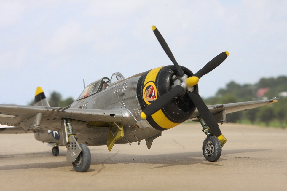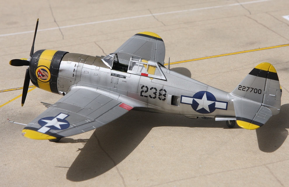 Academy a probablement utilisé la "vieille" maquette Hasegawa comme base pour le développement de ses P-47 en améliorant les détails et le traitement des surfaces. Tamiya de son coté a fait avec cet avion une de ses (trop) rares incursions au 1/72e en réduisant sa déjà très bonne maquette de l'avion au 1/48e. IL en résulte une excellente maquette, très joliment traitée, d'une facilité déconcertante à monter et ne nécessitant l'ajout de quasiment aucun détail ou accessoire.