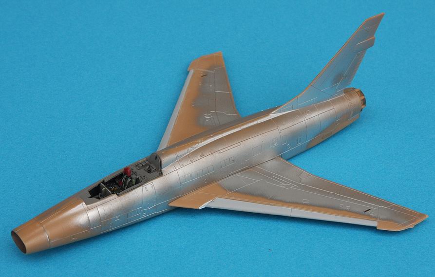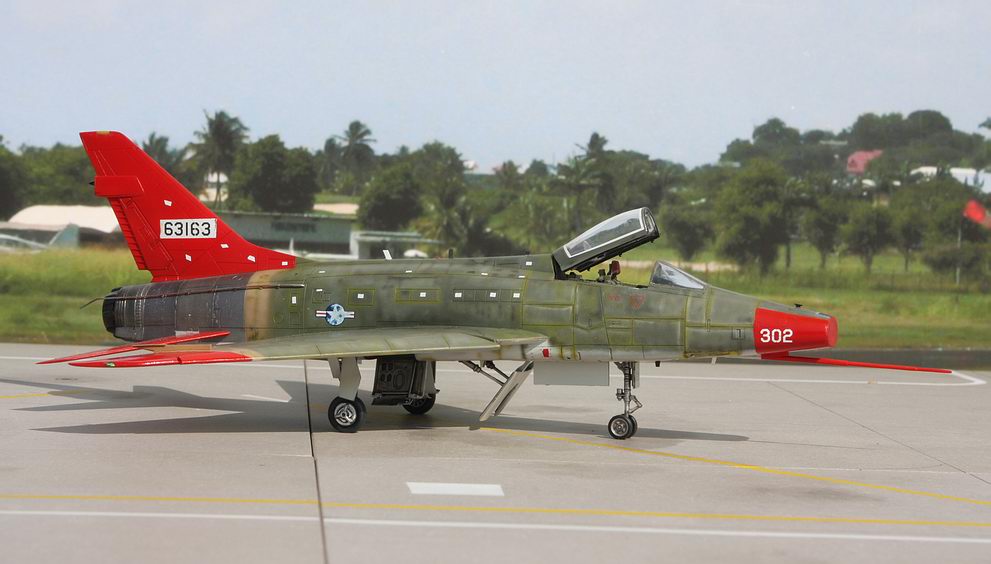 Mon projet était de réaliser un QF-100D Super Sabre, la version « Drone » du célèbre chasseur de la série des « Century Fighters ». L’inspiration m’est clairement venue d’un montage au 1/32e du même avion, montage réalisé par un ami maquettiste de (très) grand talent