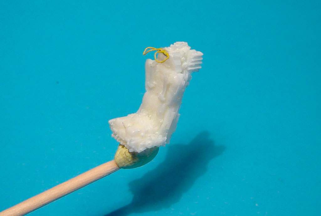 Un léger jus au white spirit + peinture Humbrol est diffusé par capillarité dans les lignes de structure en creux.