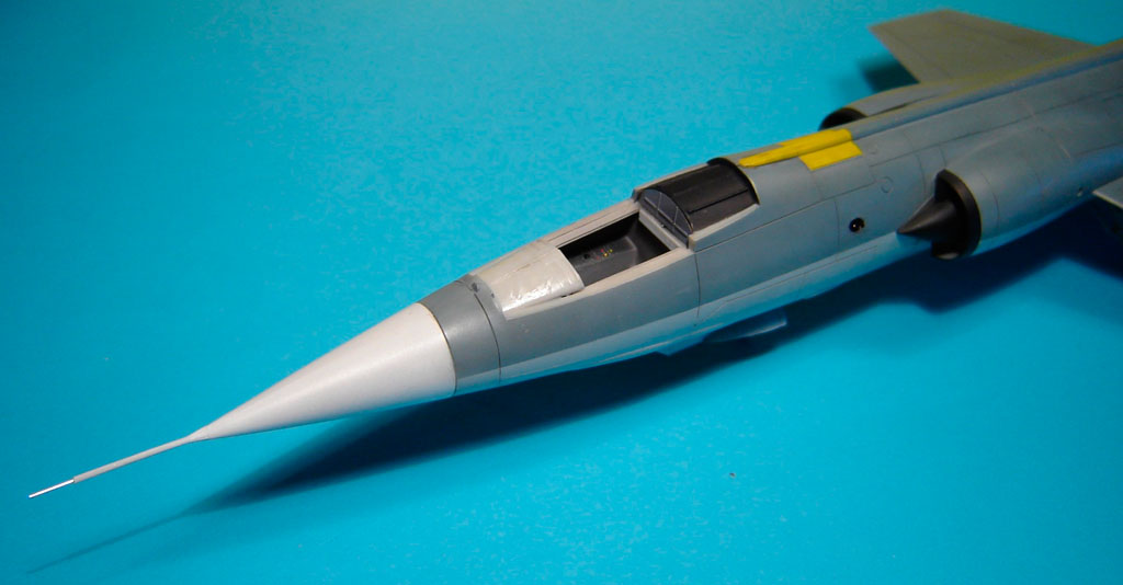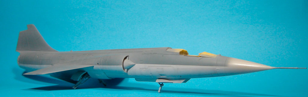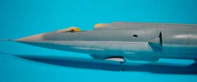 Les versions plus tardives des F-104G Allemands sont équipées d'un nouveau type de tuyère. On les reconnait à leurs pétales plus larges. J'ai utilisé la tuyère en résine de Aires destinée au F-4 PhantomII.