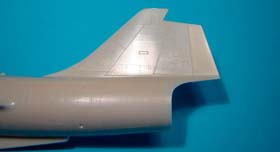 Le stabilisateur horizontal est en place (il convient de supprimer l’antenne placée par hasegawa à l’arrière du stabilisateur, cette antenne étant spécifique à certains F-104J)
