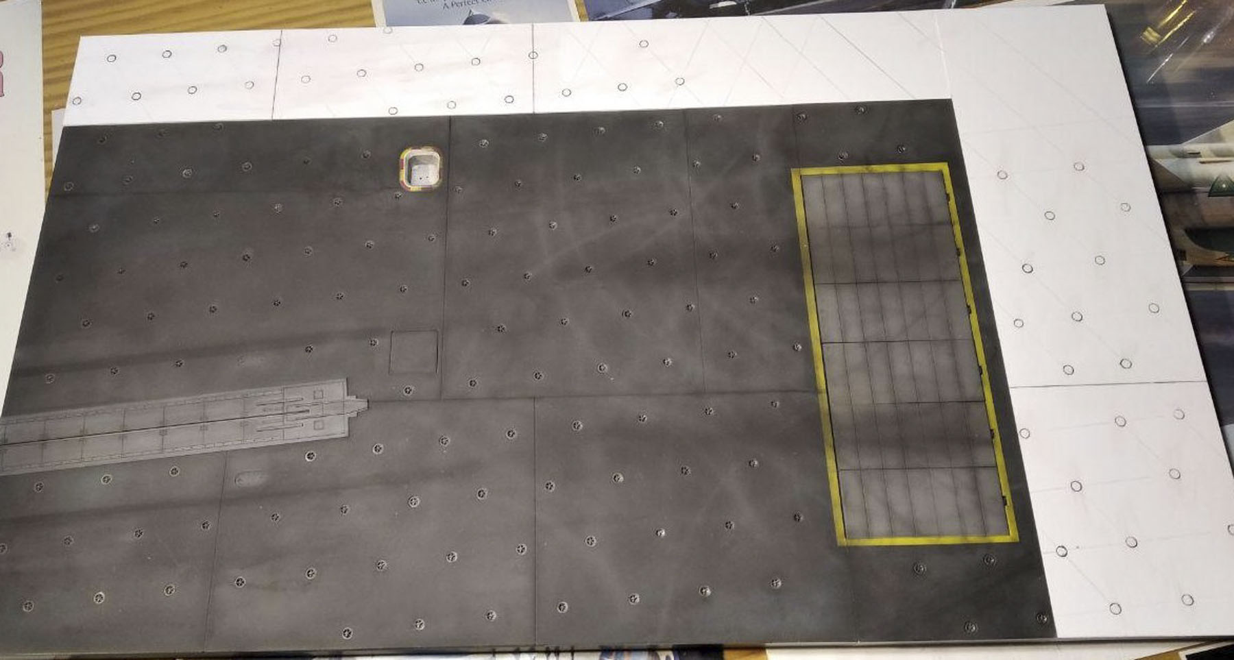 Après m'être fixé sur l'époque du diorama et le porte avion à représenter (j'y reviendrai), j'ai complètement modifié la teinte de mon pont :