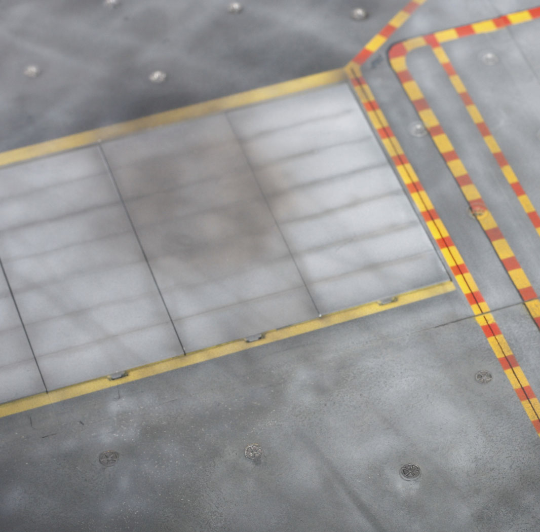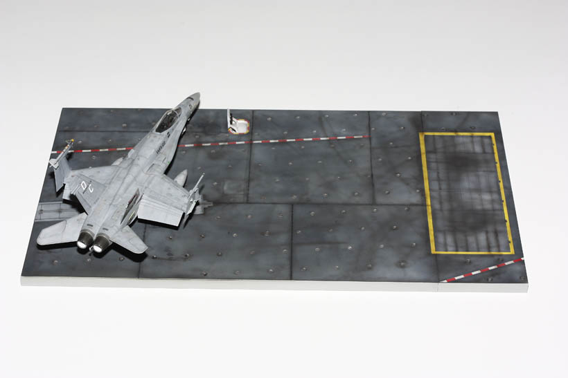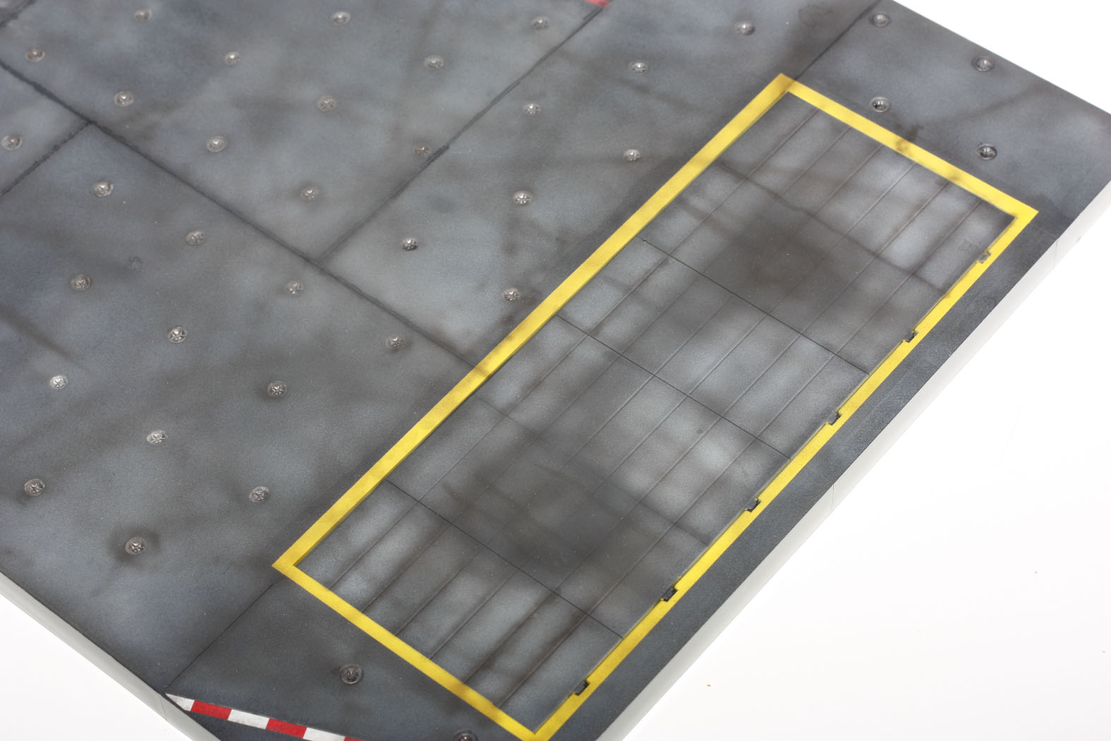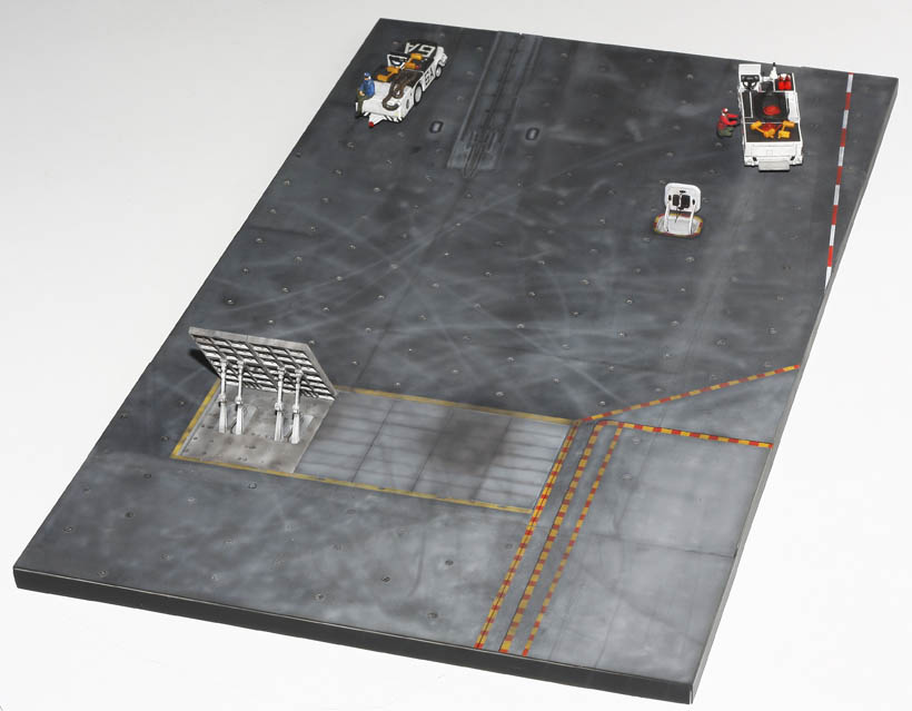 Comme je n'envisage pas spécialement de représenter un jet prêt à être lancé, j'ai souhaité agrandir cette base Italeri pour plus de liberté de disposition des futurs avions. Cela m'offrira également plus d'angles de prises de vues au moment des photos finish des modèles.