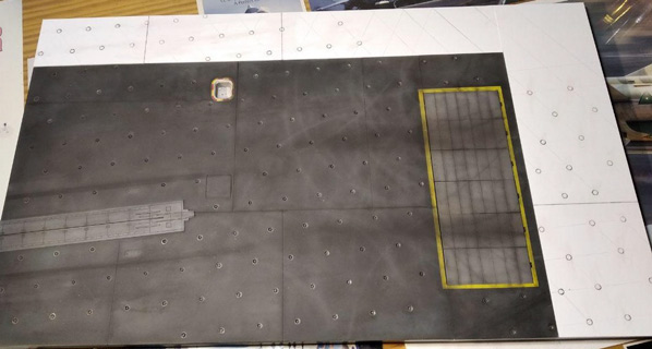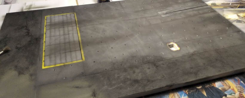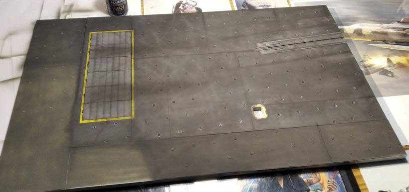 - Peinture de l'ensemble du pont (déflecteurs fermés) au Tamiya XF-22 (le 1er gris foncé que j'avais sous la main)